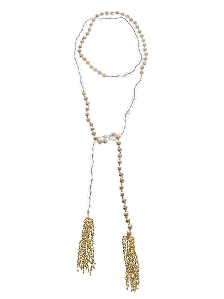 Rosantica Anais River-Pearl Necklace : Popular back in the day, but too oft-forgotten now are long, swingy necklaces. A pearl one with tassels on its ends will get more play than you expect, especially layered over high-necked tops and dresses.