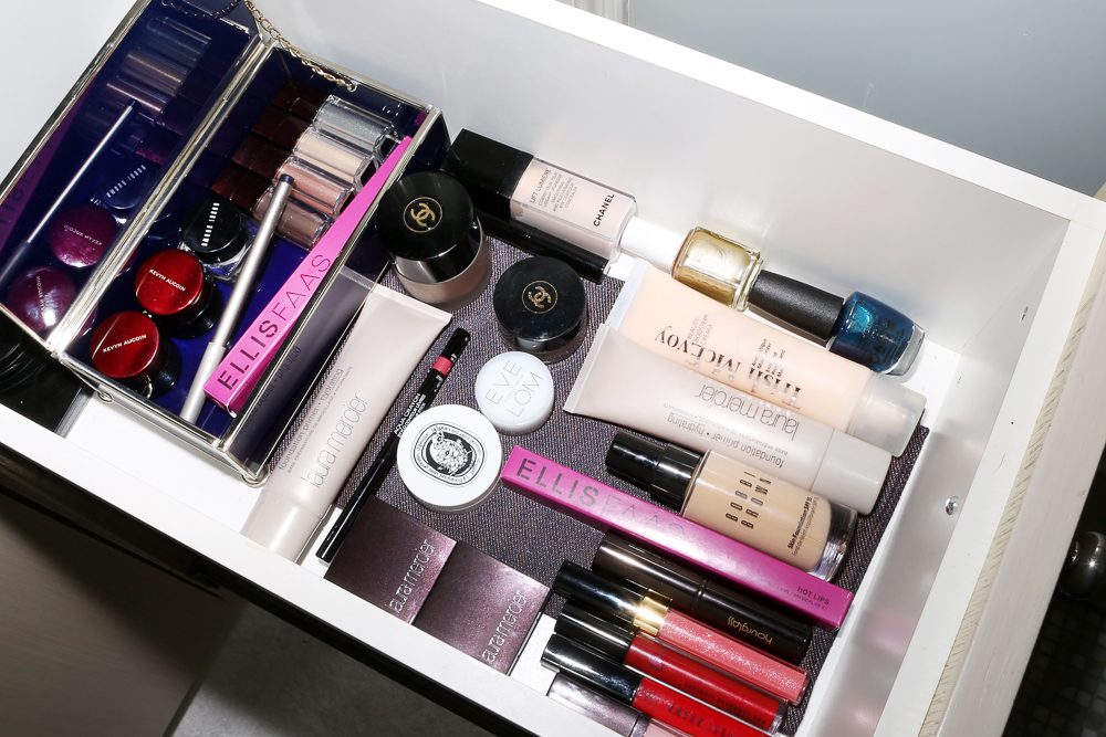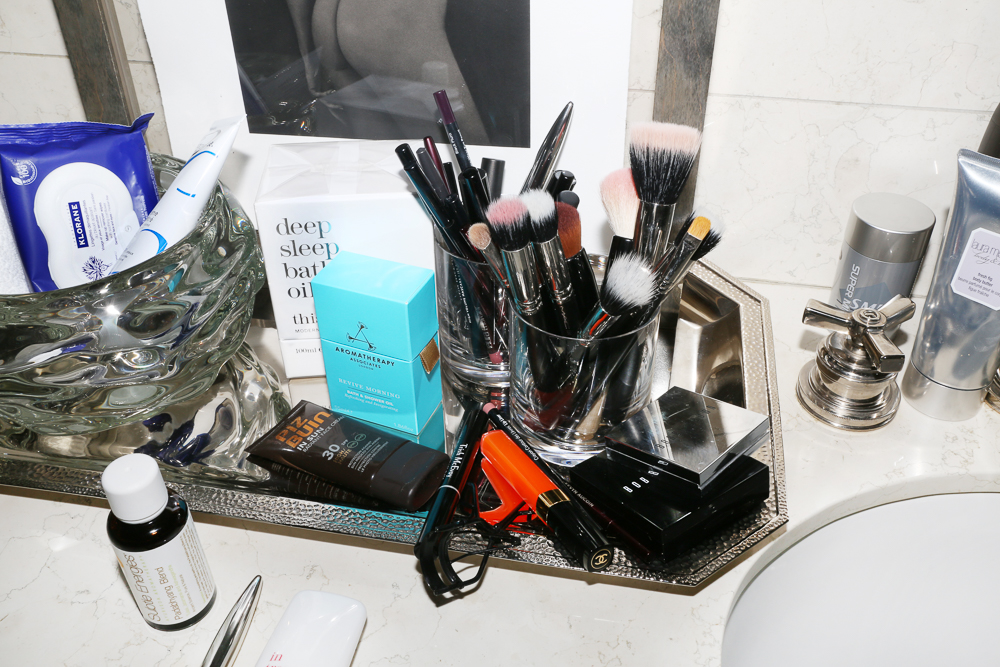 Everything I know about makeup, I learned from my godmother. She was a stuntwoman and used to set herself on fire all the time. I lived with her in LA for a while and I was like her doll. Now I’m a total product hound—I don’t use it all but sometimes you just want to smell a lipstick, you know? It takes me back to being 24 again.