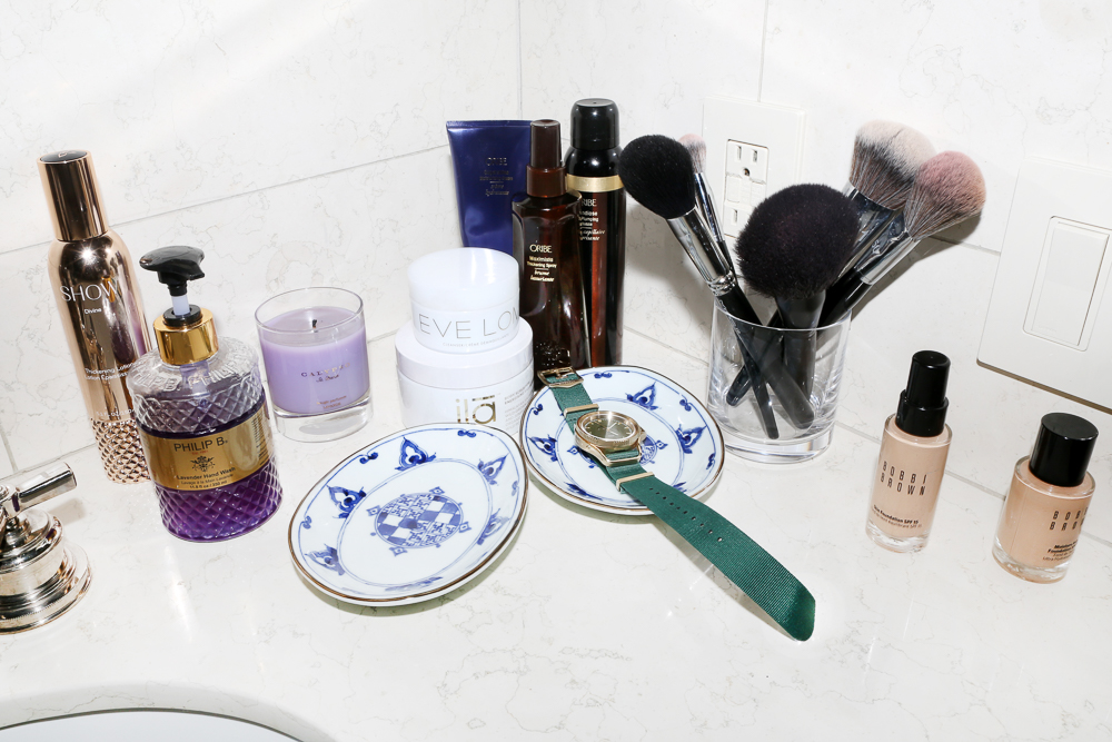 In the morning, I like to wake up around 6:30am, splash some water and the Shu Uemura Cleansing Oil on my face, and I brush my teeth. I use Plus White toothpaste because it’s mild and doesn’t sting. I buy it in bulk because it can be hard to find. Then I put on either Embryolisse or Josie Maran Argan Oil. For breakfast, I make my smoothie, which is almond butter, honey, almond milk, ice, and a banana. It’s all organic and delicious. This summer, I started juicing watermelons to drink afterwards. Sometimes you can mix it with vodka—only if it’s after 5pm though!