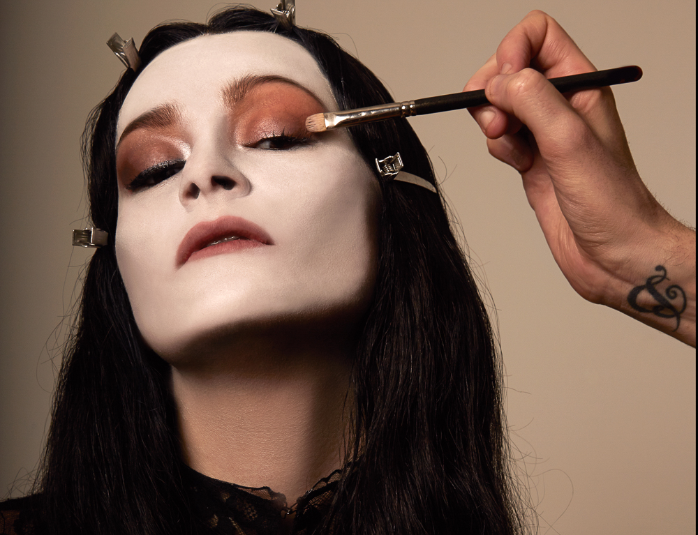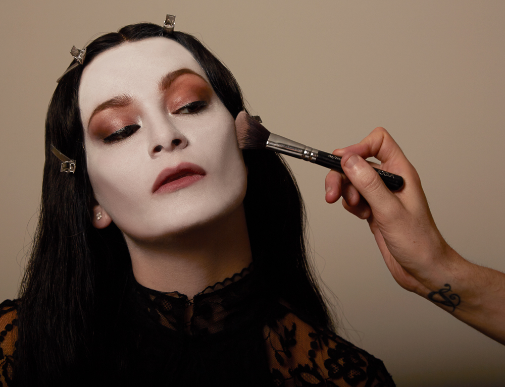 Thom Walker, makeup : “I'm very taken with Anjelica Huston as Morticia Addams—the ultimate combination of class, grace, and sexuality. And who doesn't have a wardrobe filled with black lace that they are searching for an excuse to wear?