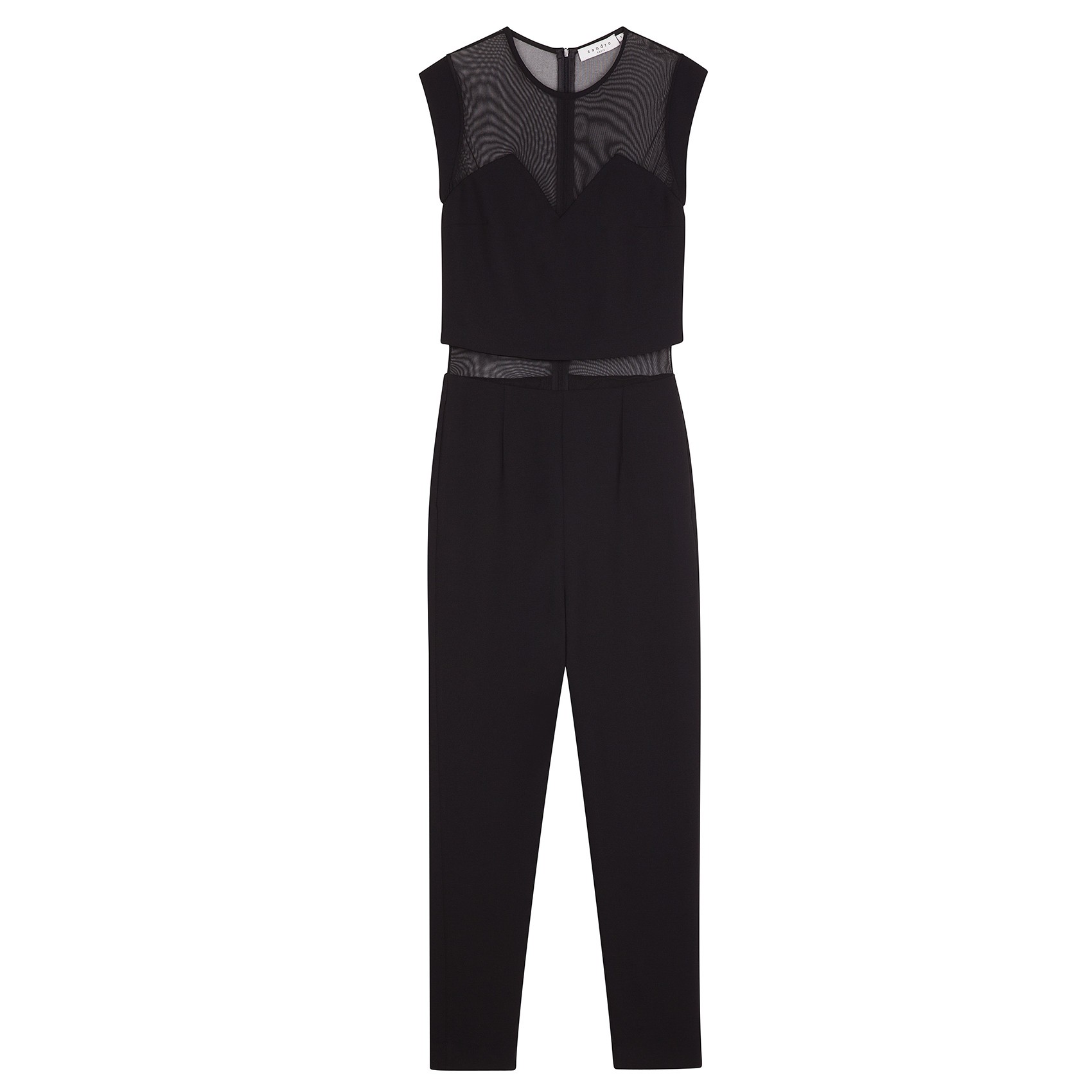 Sandro Pessy Crop Top Jumpsuit: With mesh shoulders, a cropped leg, and an exposed sliver above the waist, sleek black becomes better than basic.