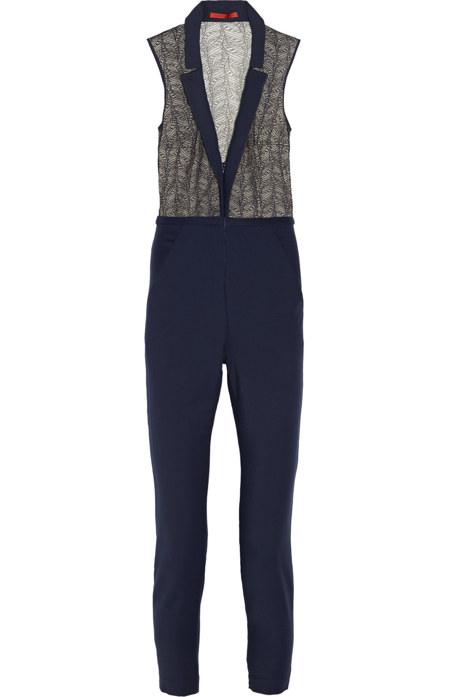 Tamara Mellon Lace and Stretch Cotton-Blend Jumpsuit: This style reads like a suit, complete with slight lapel, but with the carefree elegance of a top that's a shade shy of sheer.
