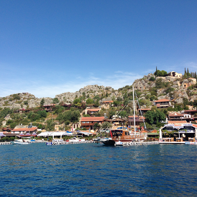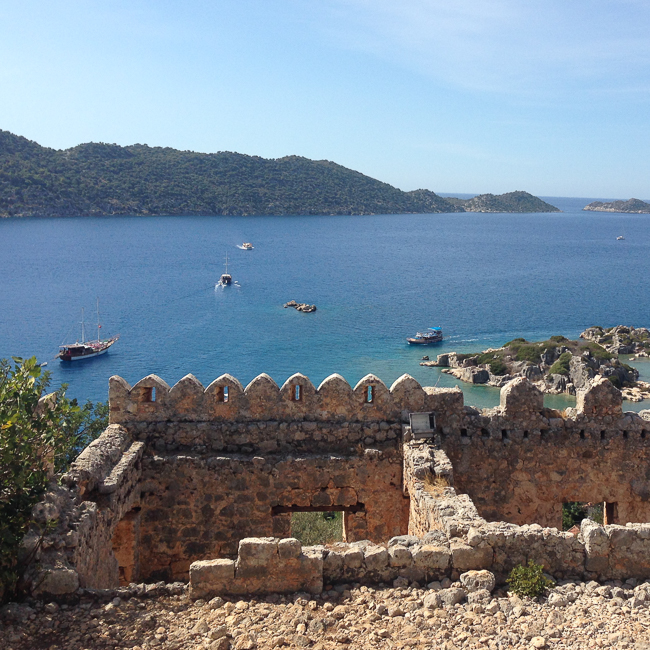 Other than eating, our days were spent lounging on the decks and swimming or paddle-boarding in the crystal-clear ultra-marine waters of the Mediterranean. I wore shoes a grand total of two times for the entire six days. Once, to visit the adorable seaside town of Kas, where I stocked up on colorful Turkish towels and an entire wardrobe’s-worth of flowy cotton cover-ups. The second time, was to visit the village of Simena, accessible only by sea. We hiked to an old fortress atop the hillside town and rewarded ourselves with fresh-squeezed pomegranate juices on the way down.