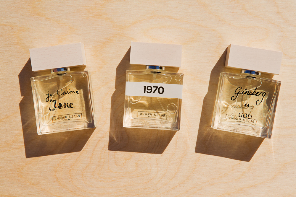 Bella is best known for her slogan-embroidered knitwear, and her perfumes have taken her three most iconic phrases—Je T’aime Jane, Ginsberg is God and 1970—and turned them each into a scent.