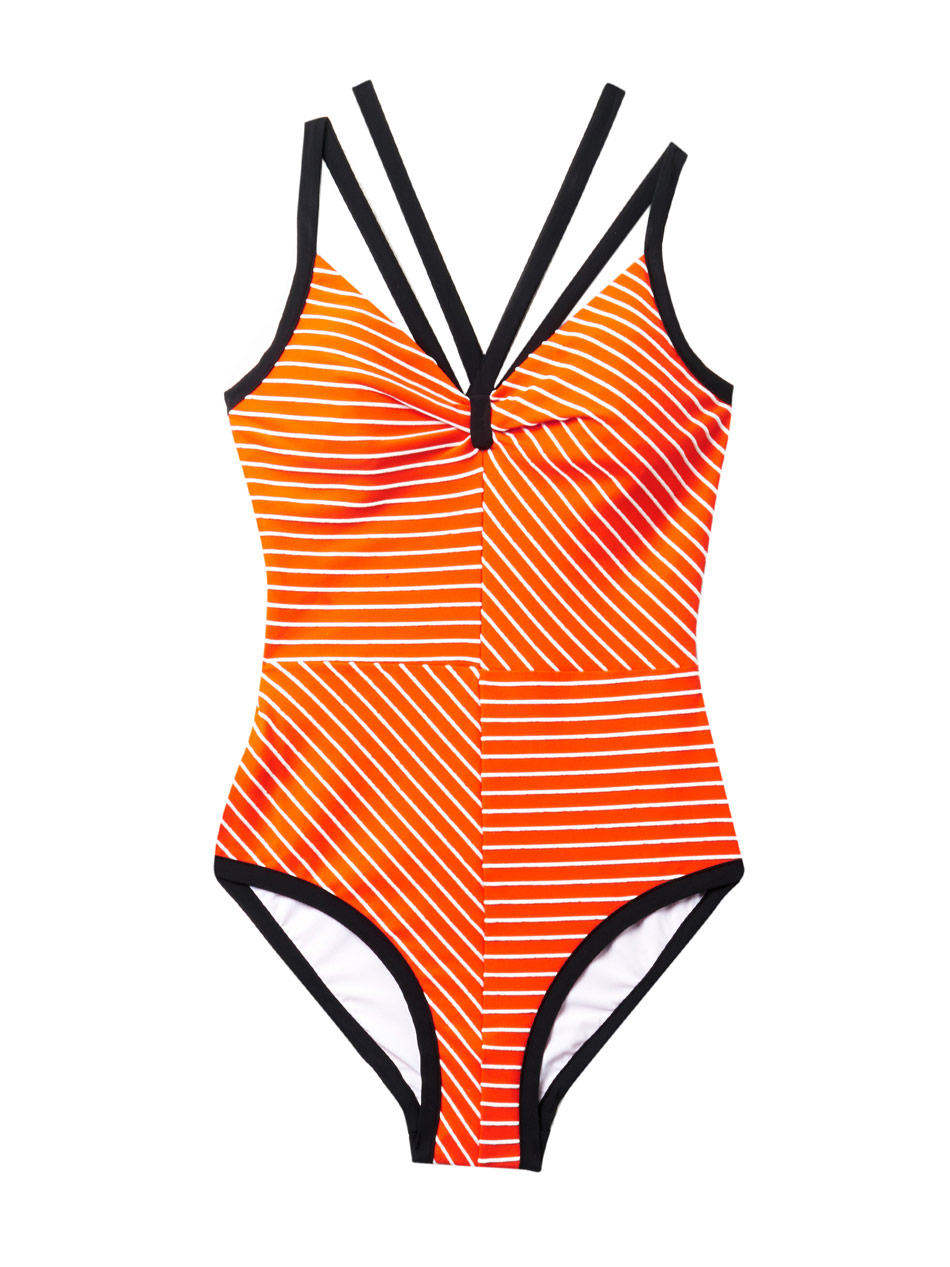 Roksanda Olinda V-Neck Striped Swimsuit : For those lucky few going on a vacation somewhere warm in the foreseeable future, you're welcome. A super well-cut one-piece is the new black.