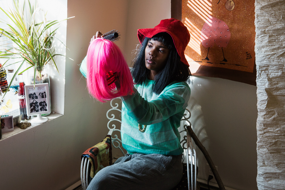 Lizzy : We never go to hair stylists. Our older sister always told us before we went away for school, ‘You’d better not have people touching your hair.’ I guess that idea stuck—like, you just were not allowed to have other people in your hair. It’s something that all young girls in our community went to school understanding—let nobody touch your hair, it was just bad luck to do it. So with that in mind, we just always did our own hair. My older sister would do it sometimes but no one from outside of our family would be able to touch it. We used to do our own braids and everything…me and Darlene would spend 10, 12 hours braiding. Our sister taught us how and then we kind of surpassed it. Darlene just started doing this new thing, crocheting hair. It’s amazing.