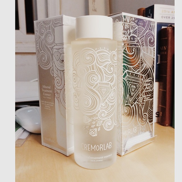 My skin is too sensitive to use my Clarisonic every day, but I want a deep clean on the days I use sheet masks—about twice a week. If I don't use a face mask, I'll use my hands to pat on Cremorlab Mineral Treatment Essence. I buy a lot of my Korean products from Peach and Lilly. It's a total Godsend when I can't get to Korea for a while.