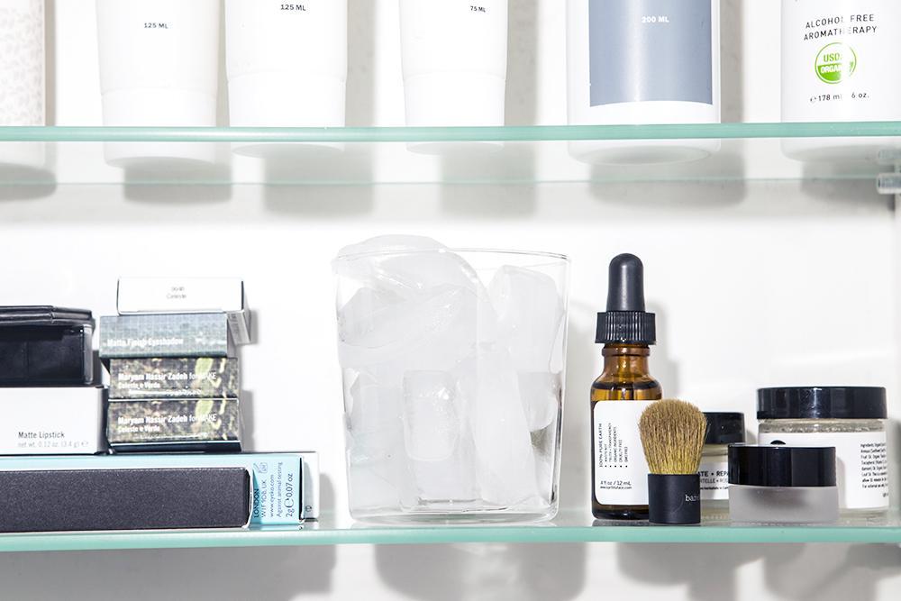 I did this all through last summer to try to constrict the single enormous pore that is my face. And to cool down. I would wash my face and then spray myself down with rosewater and ice away. It’s messy. An additional hankie or towel is necessary to catch the little droplets that run off your face. It’s alleged to alleviate everything from acne, wrinkles, excess oil, and enlarged pores. It's sort of a dramatic process, so don’t expect to do this in front of someone and think they’ll take no notice. You might get a funny look, but your skin will have that serious glow that only a brush with an arctic temperature can give—a gentler kind of shining.