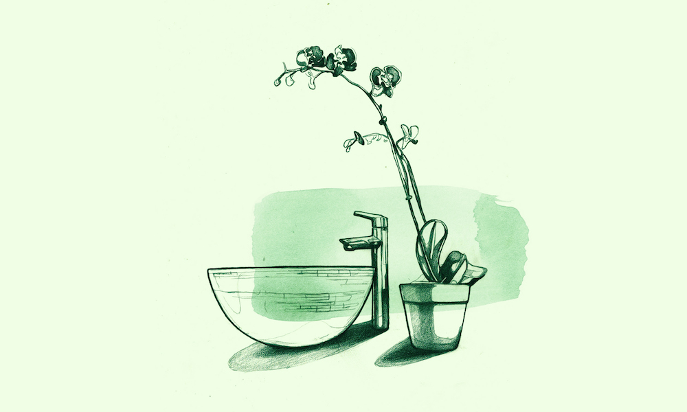Then there are the general trends of arrangement and setting. The makeup tray has emerged as favorite desktop organizer—it’s not unusual to see a bathroom spotted with silver platters filled with a perfect arrangement of absurdly photogenic pieces. If you’ve got the space, you might end up with a silver archipelago mapped across your vanity. And a simple, delicate flower on a bathroom sink (or if your thumb isn’t so green, a hearty aloe plant) brings the destination-spa to you, except instead of prepping for a massage, you’re prepping for your commute.