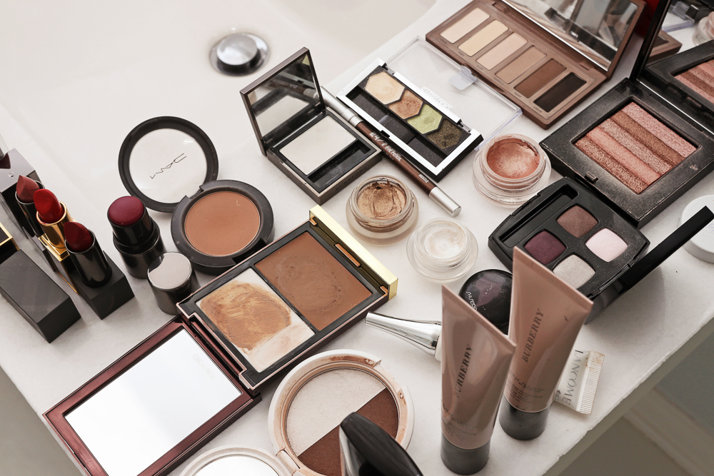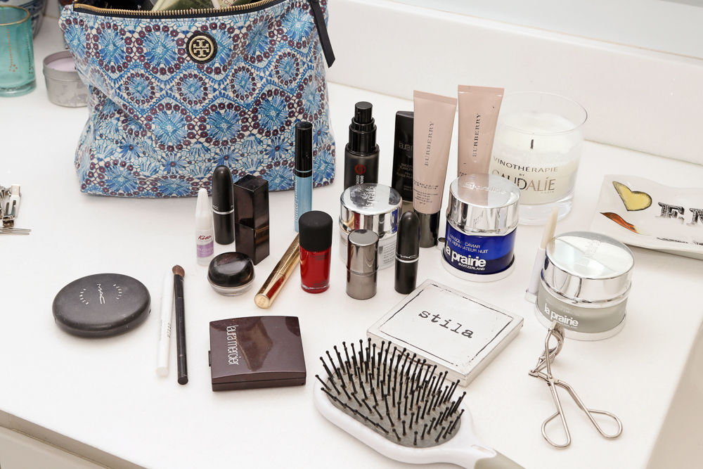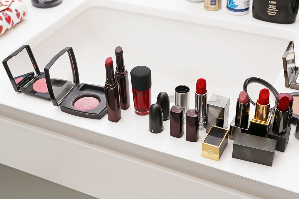 Then, Bobbi Brown and Chanel make really beautiful blushes that you can then you add on top. Like, on the apples of your cheeks and up to the base of your eyes…I like to sweep upwards with a shimmery kind of blush and Bobbi Brown Shimmer Bricks are great because you can also turn them into eye shadows. I love anything that you can use for multiple things—I’m all about the practicality of being able to use one product on your lips, your cheeks and your eyes. Nars Orgasm is still always a good one, and Butter London makes some of my favorite cream blushes right now—I love Abbey Rose Cheeky Cream Blush. And I also love NYX’s Highlight and Contour Powder. For lips, I love Burberry Lip Velvet in Military Red, MAC’s Matte Lipstick in Runner, Tom Ford Flameand Laura Mercier’s Rouge Sexy. Or Burberry’s Lip Cover in Tulip Pink is so pretty. And Dior makes the best gloss.