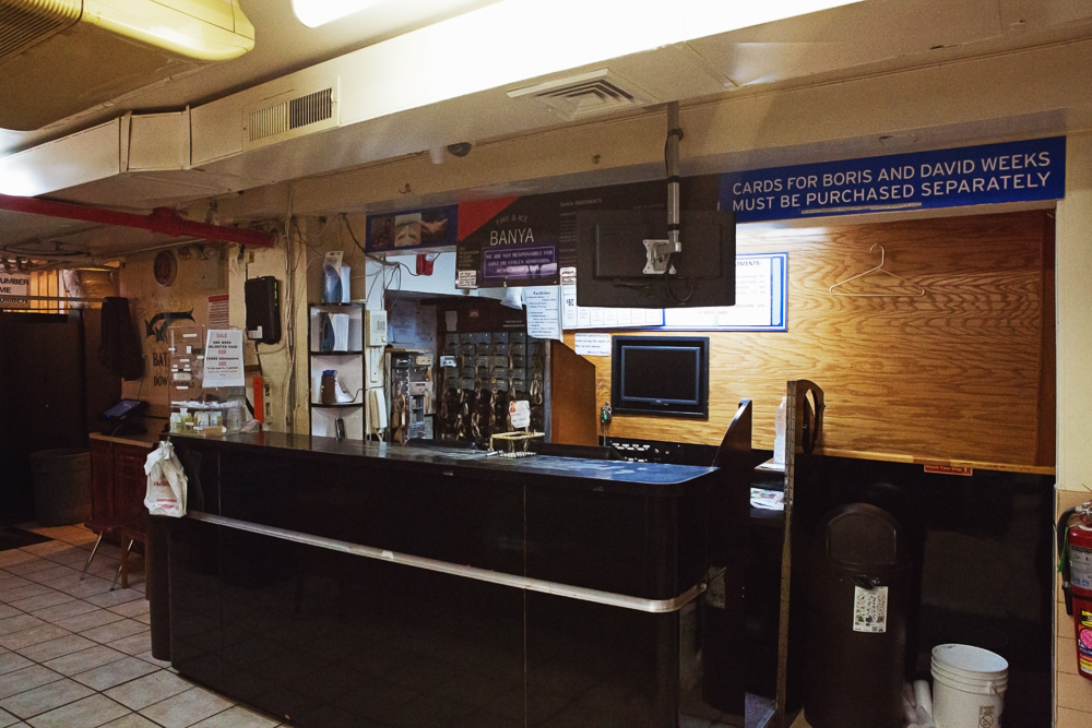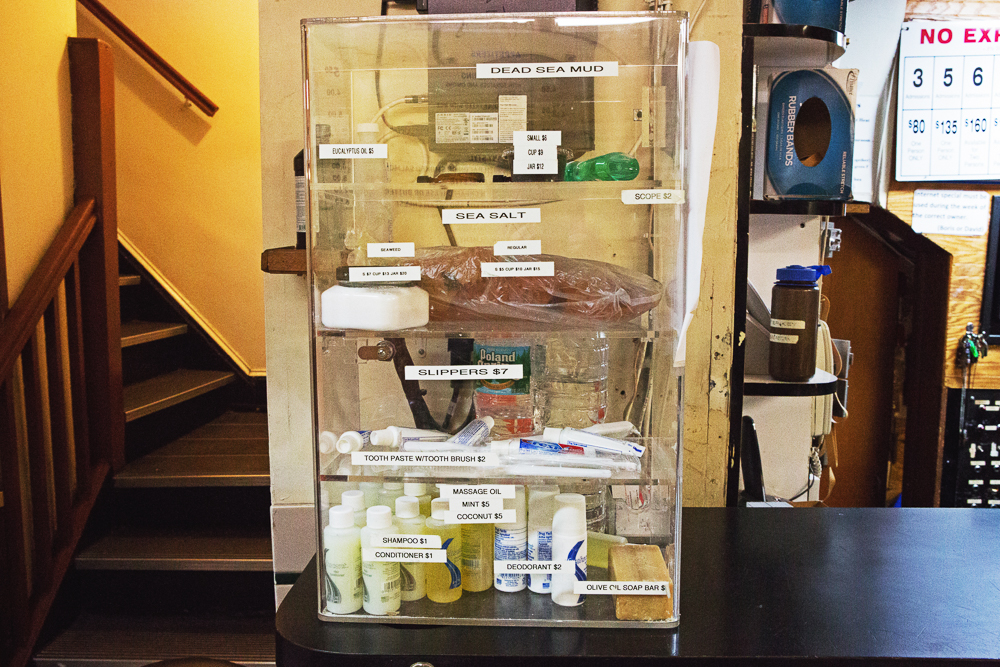 In Russia, banyas are considered liminal spaces, caught between worlds. This is in part due to the extreme atmospheres they offer—they are cold, wet, hot, and dry all at once. Historically, they were also where babies were born, owing to their abundance of fresh water, hygienic surfaces, and radiant heat. In short, they were magical. On first impression, the Russian & Turkish Baths seemed both magical and a little scary—a shadowy, windowless place that also felt venerable and bygone, like the best of the city’s old subway platforms. Sweaty patrons slipped in and out of mystery rooms. Almost immediately, a large man with a towel draped over his head asked us in heavily accented English if we wanted a massage. He stood next to a plastic garbage can filled with suds and leafy brooms. “Maybe later.” we told him—best to get the lay of the land first.