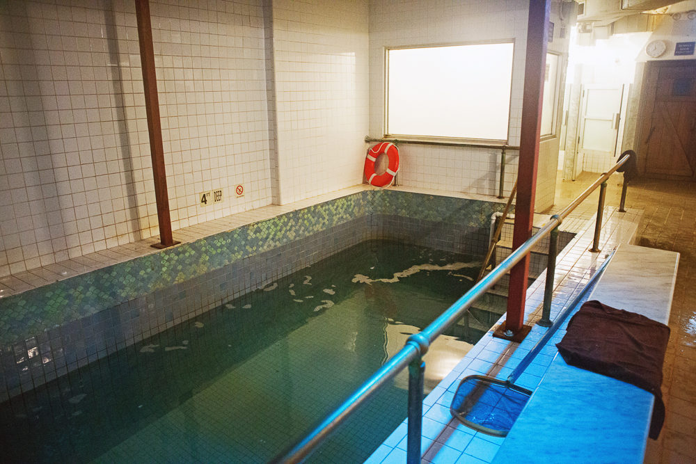 The Baths, once referred to as the The Tenth Street Baths, have been around since 1892. Judging from archival photographs, there was a time when they were clothing optional and men-only. Today, the baths are co-ed except for Wednesday mornings when they are women-only, and Sunday mornings, when they are reserved for men. I visited on a sunny Sunday afternoon in October with my sister, also a first-time banya-goer. Bathing suits in tow, we paid the $35 admission fee and were given black cotton robes, towels, and plastic sandals. We changed and made our way downstairs to get our schvitz on. (Schvitz is the Yiddish word for “sweat.”)