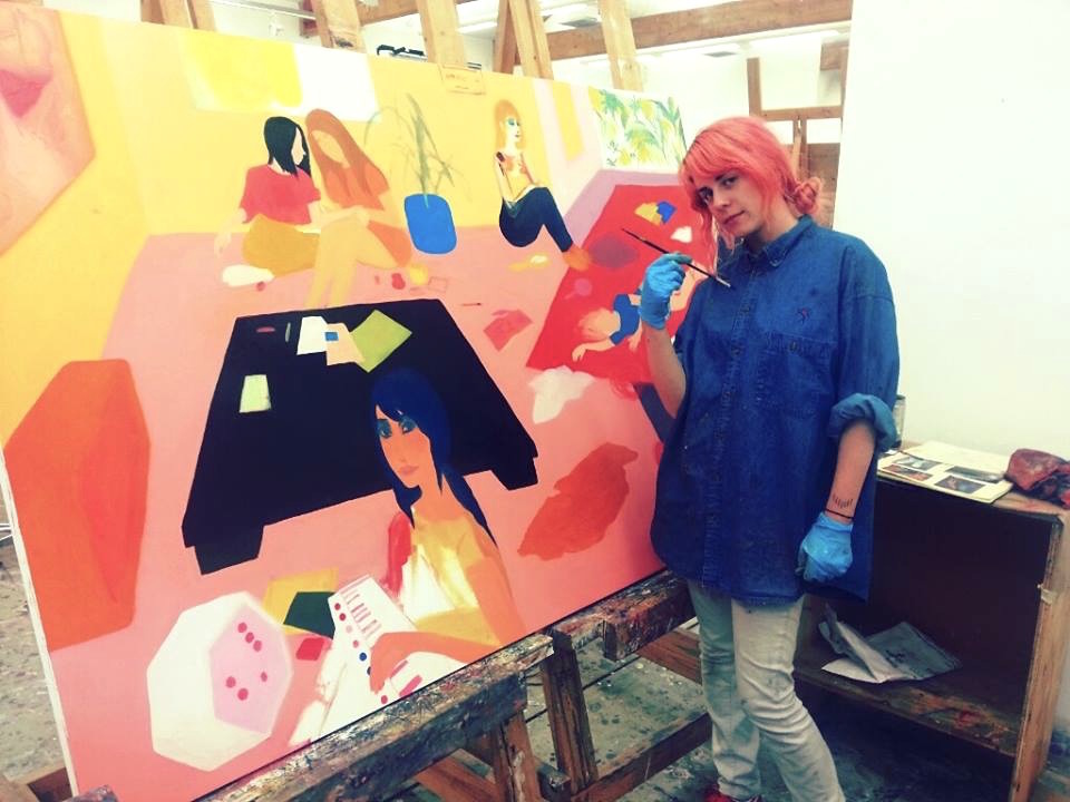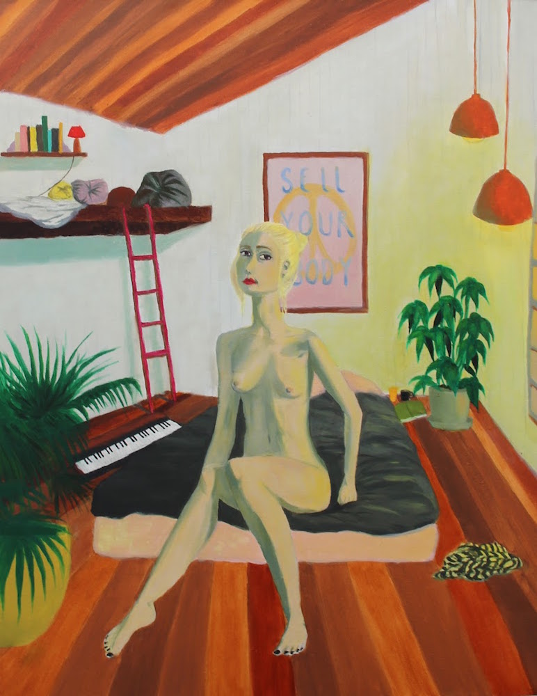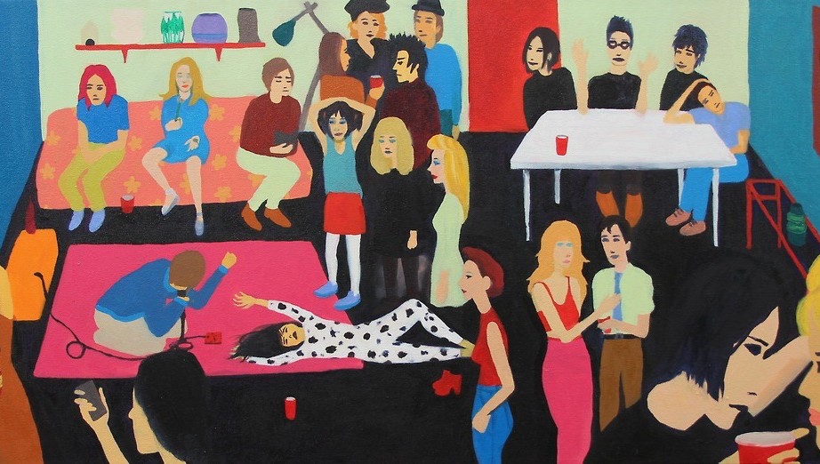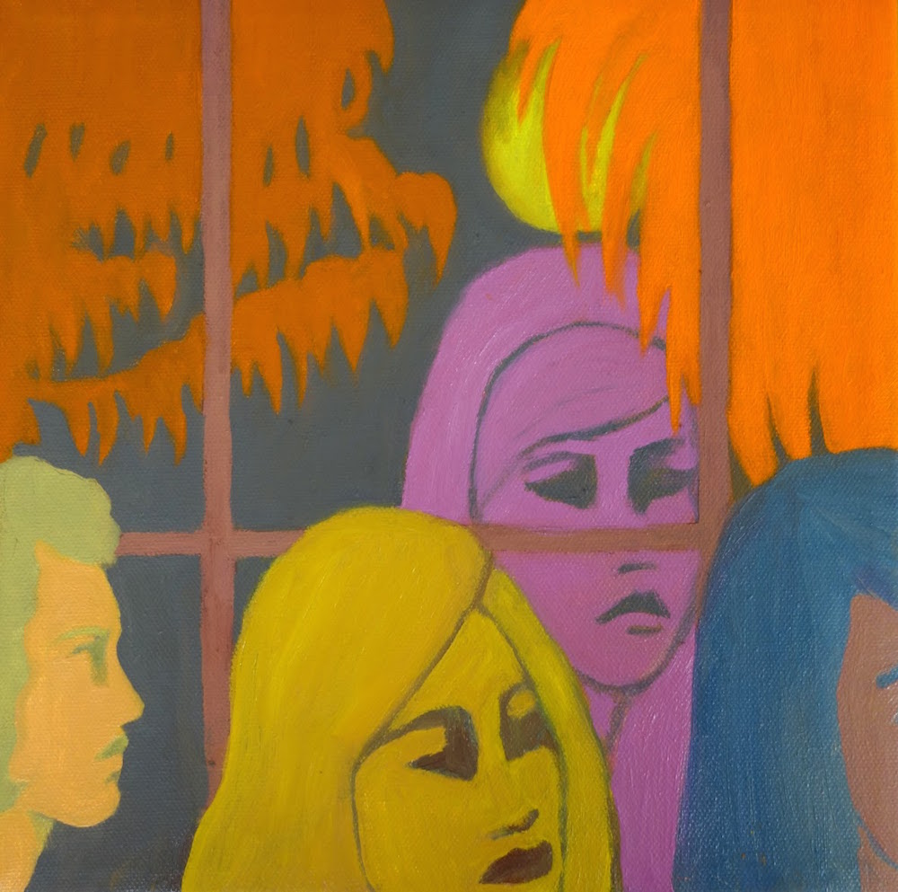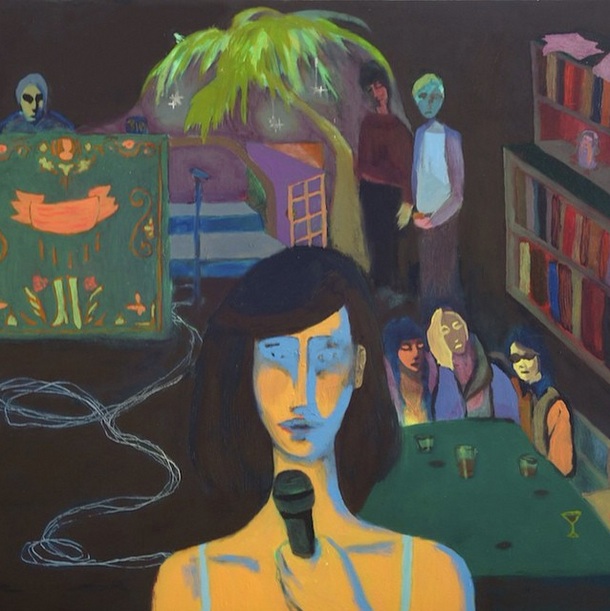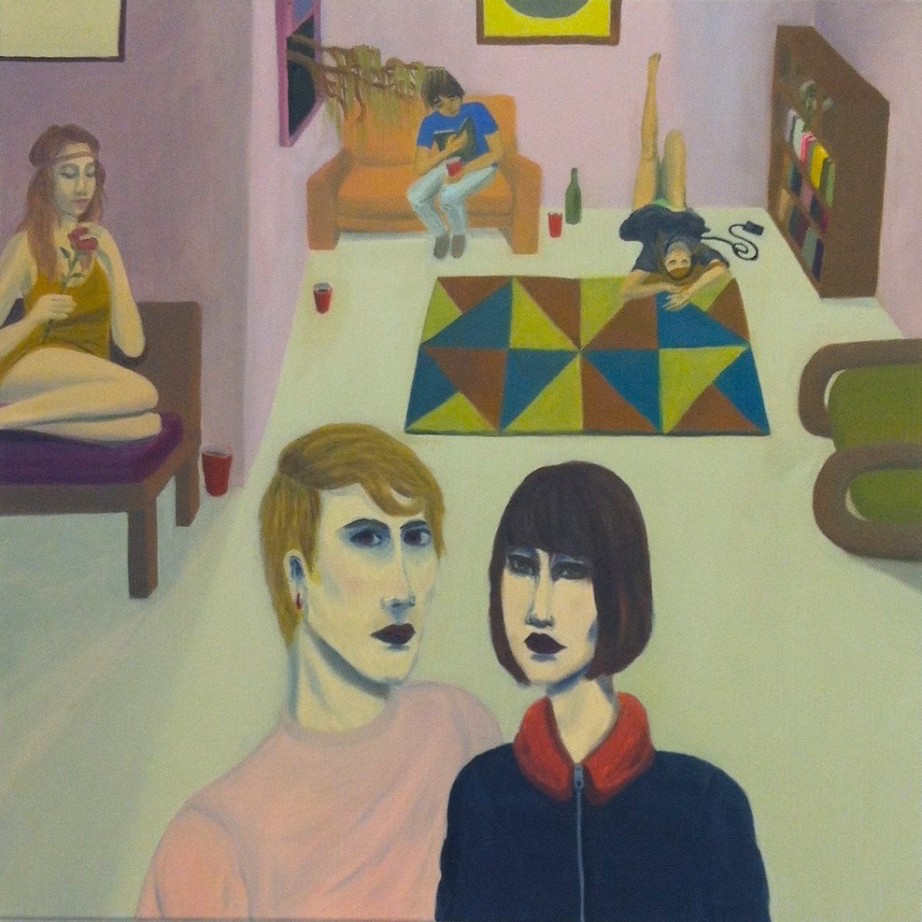 Lively, complex, and symbolic, the best kind of fever dream. Jessica Dean Harrison's work reminds me in a way of David Hockney as a young man, painting personal subject-matter in oil paints rendering in a highly realistic look using vibrant colors. Jessica captures that less than happy girl sitting at the end of a couch at a house party and the light hearted conversation taking place near the stage at a show set against flat backgrounds. Jessica reads body language as a therapist does and translate soft conflict in each painting effortlessly.