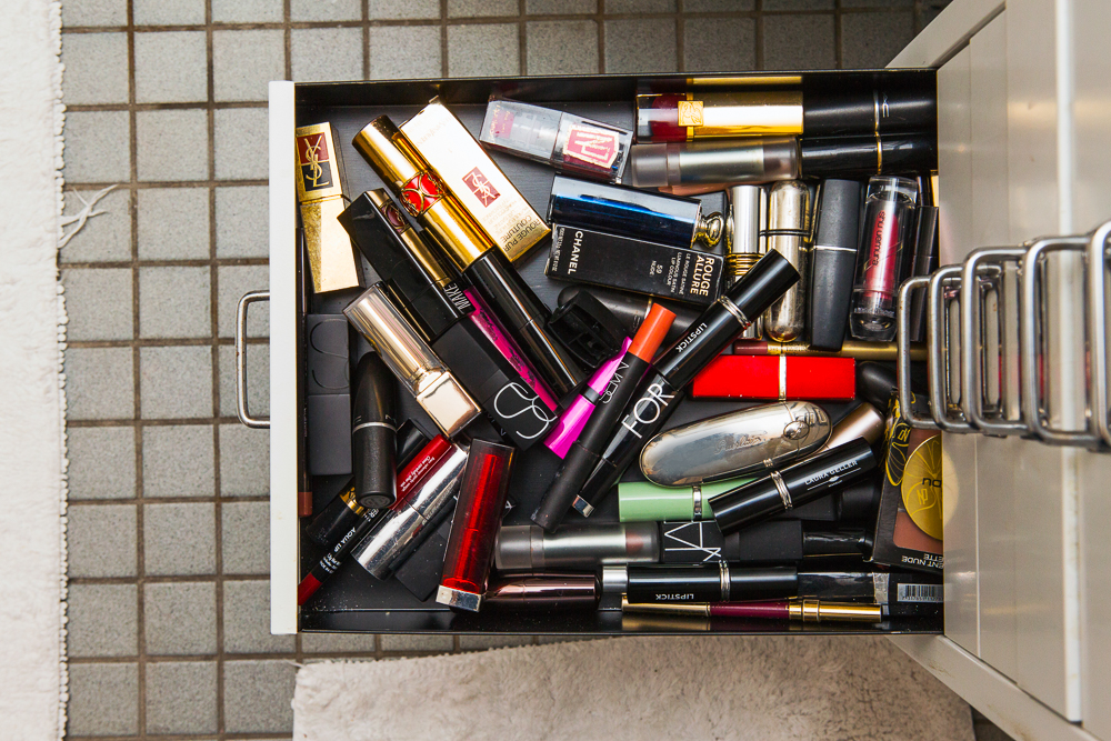 In the winter, I use Instant Glow Face Lotion by St. Tropez. It’s a kind of bronzer that makes you look like you’ve just come back from vacation with an even, fading tan. But really, when it comes to makeup, I just wear lips. Red lipstick is like caffeine for the face because it brightens you up immediately. Just put on a red lip and your face just looks fresher, brighter, more awake and polished. My favorite is Yves Saint Laurent—the Rouge Pur Couture 203 is the best, the matte one. It has to be a red red. I buy Bobbi Brown Art Sticks in all the different colors and I also like Nars lipsticks, for a more natural color. I really like the Pure Matte Lipstick in Montego Bay.