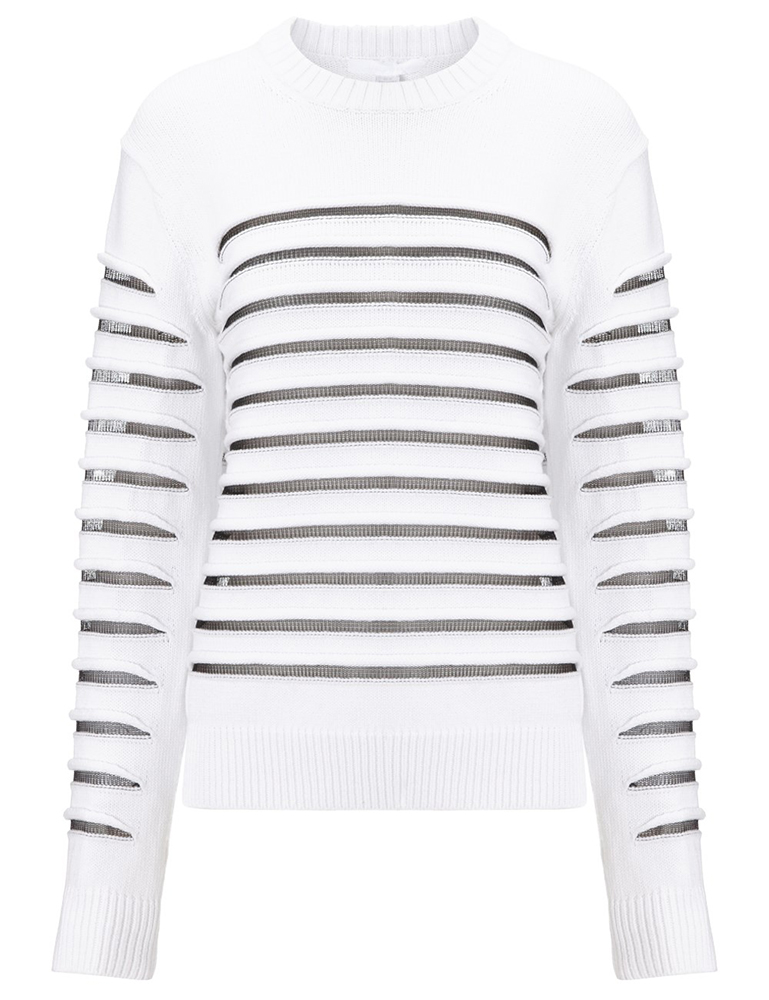 Alexander Wang Peel Away Mesh Jumper: All the comfort of a fisherman sweater with the added bonus of edgy mesh racing stripes. Great for ventilation.