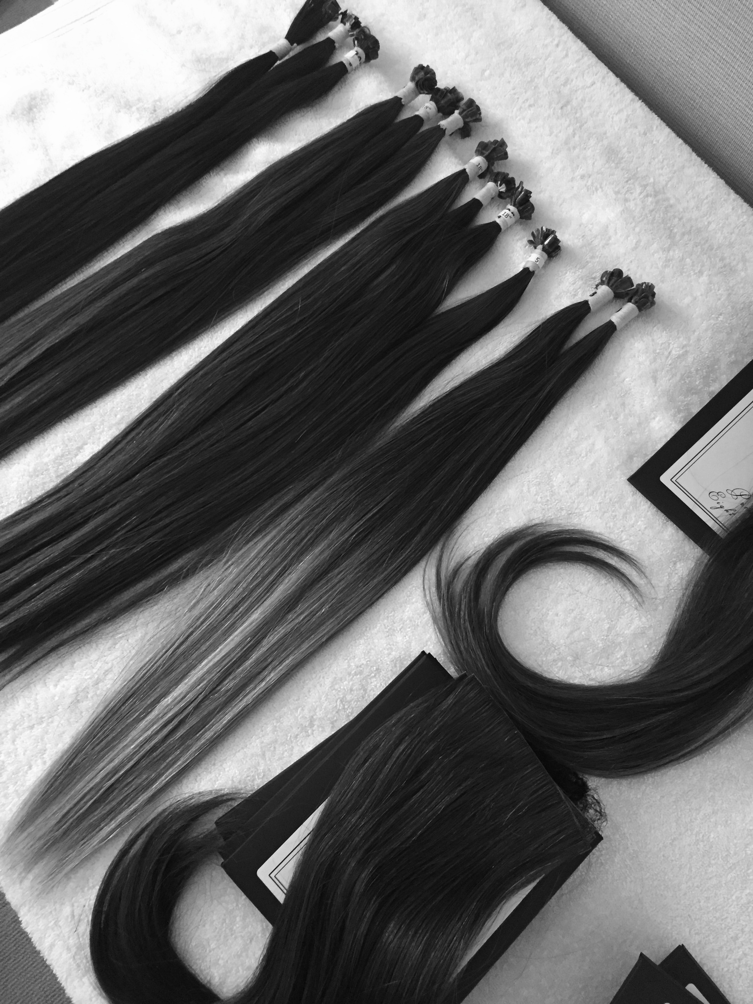 “You’re getting the Rolls Royce of hair extensions,” she said, situating me in a chair in the middle of the room, with my back to the table. “These are individual keratin bonds, and the hair is Russian and Indian.”