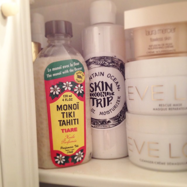 From the neck down, I need Mountain Ocean's Skin Trip Coconut Moisturizer—it's the only thing that keeps me from scratching my skin off in the winter. I like to finish all my skin stuff off with a good fragrance. I like things that are pretty heady. I'll usually do Balenciaga L'Essence during the day or some amber oil. But I like Love's Baby Soft too—it reminds me of being a kid. Going out, I'll apply Tom Ford's Black Orchid or 1996 from Byredo to the backs of my knees and below my belly button—things that make you smell really sexy, cozy, warm, and stay on the skin until morning.