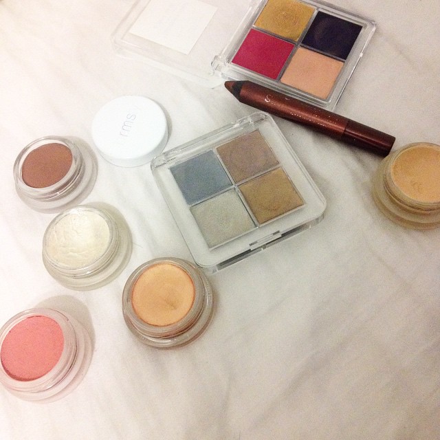 I usually do my makeup really quickly on the subway as I'm heading to work—I've gotten the daily thing down to about five minutes. I try not to use foundation and go for things that feel really light and creamy. I'm really liking Glossier's Perfecting Skin Tint in Light just on the nose and chin—blended up-and-out. Then I use my beloved RMS Beauty 'Un' Cover-Up in 11 around my nostrils and chin where I get the most redness. Then I'll blend RMS Beauty Buriti Bronzer along my cheekbones and a touch on my nose and temples to give me color. Also can't forget about their Living Luminizer on the tops of my cheeks, brow bones, inner corners of my eyes, cupid's bow…everywhere really. It's crack for anyone who wants dewy skin. Most days, I use Nars Audacious Lipstick in Anita as a cream blush, then use the remaining product on my finger and press it into my lips on top of Elizabeth Arden’s Eight Hour Cream. The lipstick is just a touch darker than my natural shade so it makes my whole face look a bit more alive and makes my lips look fuller than they actually are. Barry M's Genie Lip Paint is awesome too for when I want a stronger color—it's green in the tube but adjusts to your lips and stains them for hours with this raspberry shade.