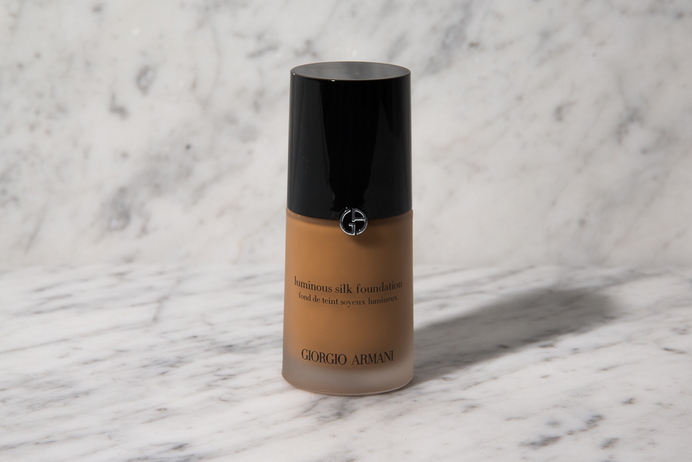 I obviously love it when I get my makeup done, but I’m pretty good at doing it myself. If you were to look at my makeup bag right now, it has a little MAC 182 Buffer Brush, and there’s also a bigger kabuki brush that I have to find on eBay because it covers my psoriasis really well—those are the best, and I apply my foundation with those. I love Armani Luminous Silk Foundation and Joe Blasco Ultrabase Foundation—it’s a really old school, heavy foundation. My dad got me makeup classes for Christmas when I was like 14 at some Joe Blasco makeup school, and I’ve worn that foundation ever since.