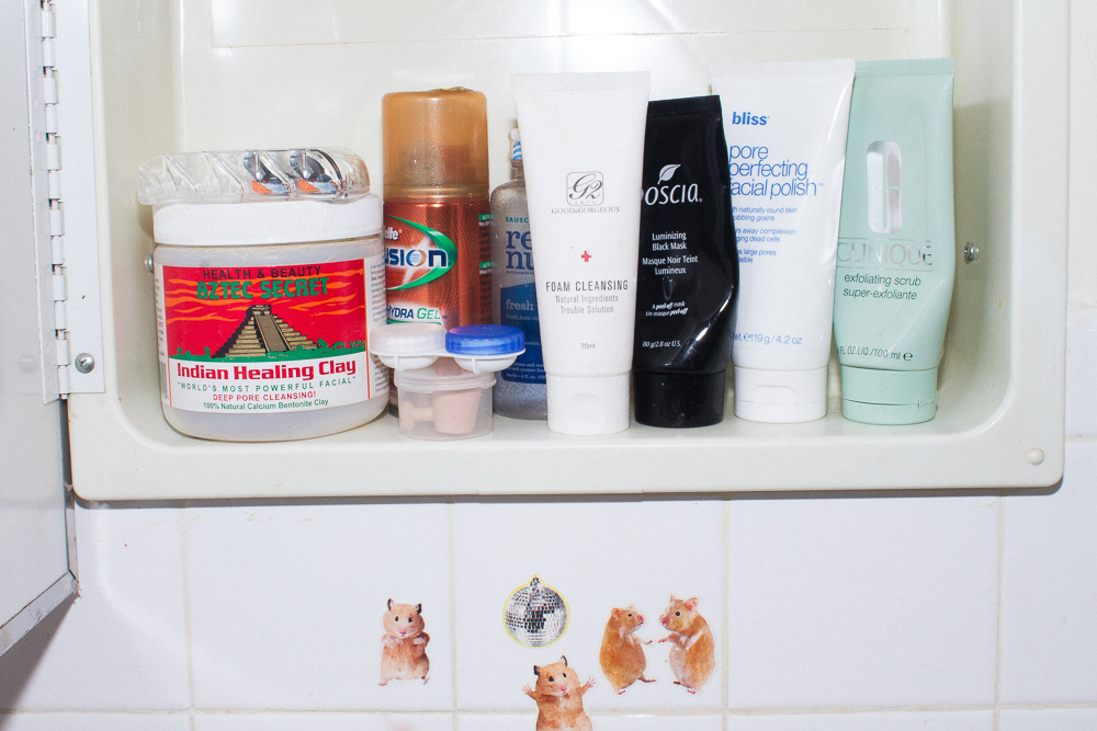 I usually do a mask to get ready for a night out because it always relaxes me. The Aztec Secret Indian Healing Clay Mask is the secret that’s not-so-secret anymore. When I’m feeling that I need to really cleanse, I mix it with apple cider vinegar instead of water—it’s intense and not for everyone. Then I do one of those Korean face masks or some brightening one. There are so many brands, they’re kind of interchangeable to me. The Boscia Luminizing Black Mask hardens, and then you just peel it off, which is fun. And then another one I like is the Queen Helene Mint Julep Masque. The most hydrating one is this Black Seed Total Anti-Aging Mask Sheet for Men one from The Face Shop which is right around the corner from my house. I’ll do masks six-out-of-seven days of the week. To wash my face, I like to use a scrub. I have multiple, but the Clinique Exfoliating Scrub is my favorite because it’s grainy, so you can really feel it working. Whenever I get acne, I put toothpaste on it because that's the only thing that works. My friend told me that when you get a bad cystic pimple, you should cut a potato slice and leave it on overnight with tape over it—the potato turns black, and all the toxins are absorbed. It works.