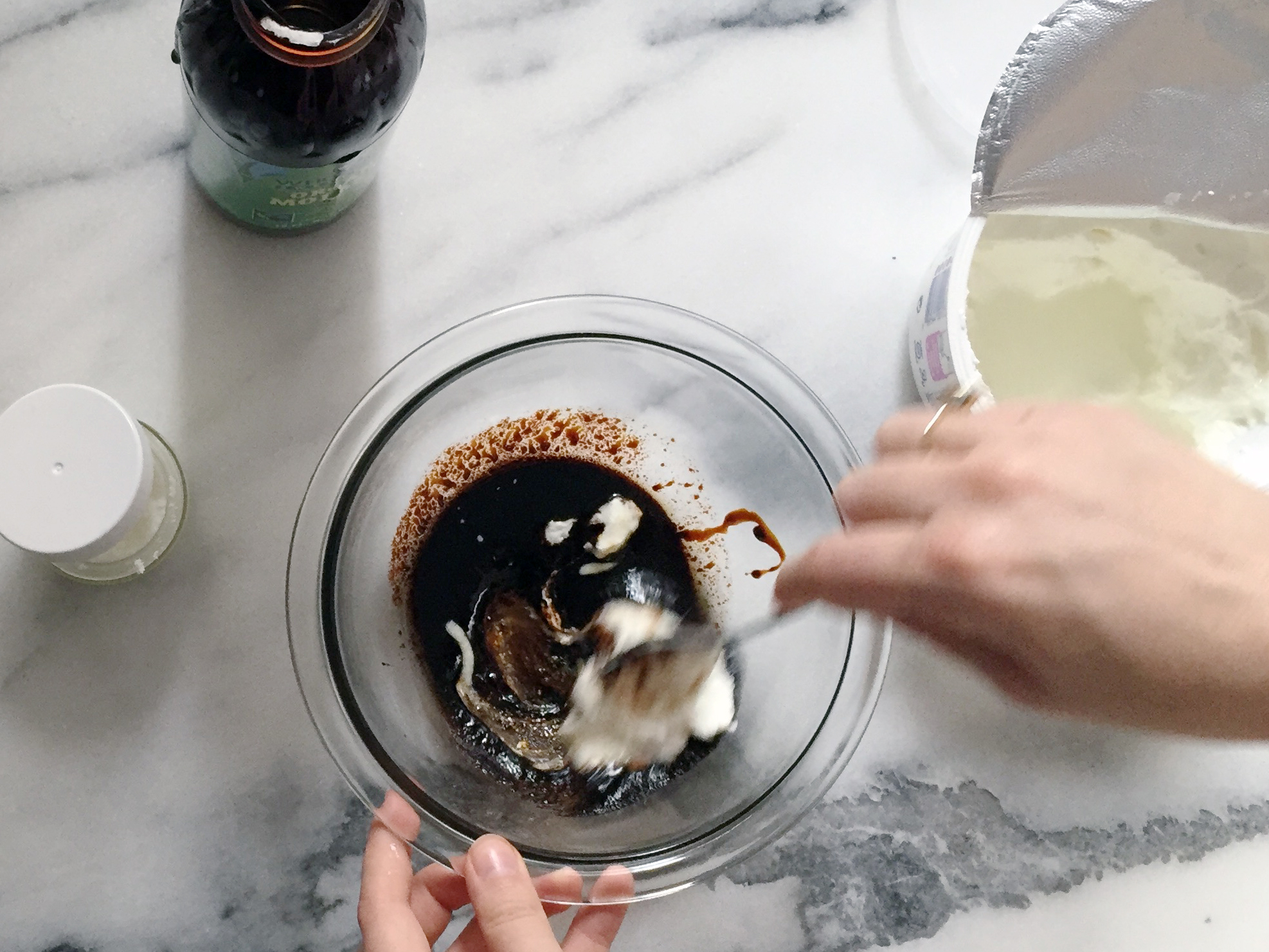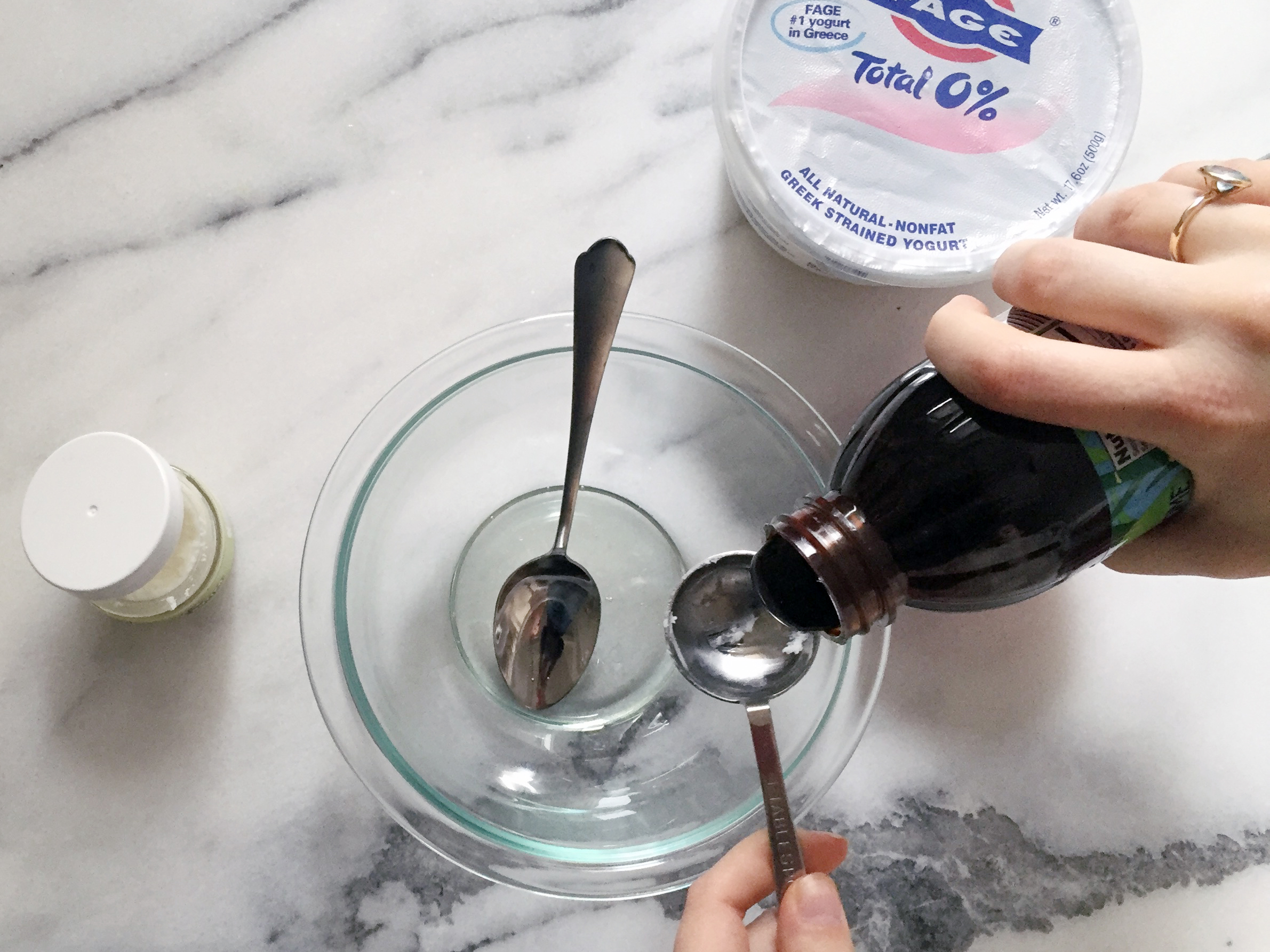 - Spoon yogurt into a medium bowl and stir into melted shea butter.