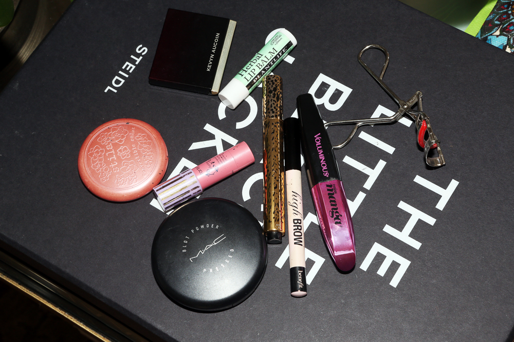 Before I use anything on my face, I like the Glossier Priming Moisturizer. It’s a good base because it plumps up my skin and makes it happier. On the show, they’ll use the Glossier Soothing Face Mist on me, too. Even if I’m not filming, the thing I use every day is YSL Touche Éclat #2. It goes under my eyes because I’m blessed with dark circles, and then I highlight my cheekbones and Cupid’s bow. Sometimes I will powder my t-zone because it gets really shiny—I use MAC Blot Pressed Powder in Medium. I don’t know how the heck to contour—I mean, I live for those YouTube videos, but I can’t do it on myself much—but somebody used the Kevyn Aucoin The Sculpting Powder in Medium on me at a photoshoot and it looks super nice. I just put it below my cheekbones and just a little bit on my forehead because that’s all I can figure out to do. Then I’ll use cream blush because I think they’re prettier. Stila Convertible Color in Lillium is nice and dewy. And then Tarte has really good lip colors. I like the Alluring Lipsurgence Matte Lip Tint—it’s a barely-there pink and you can build it.