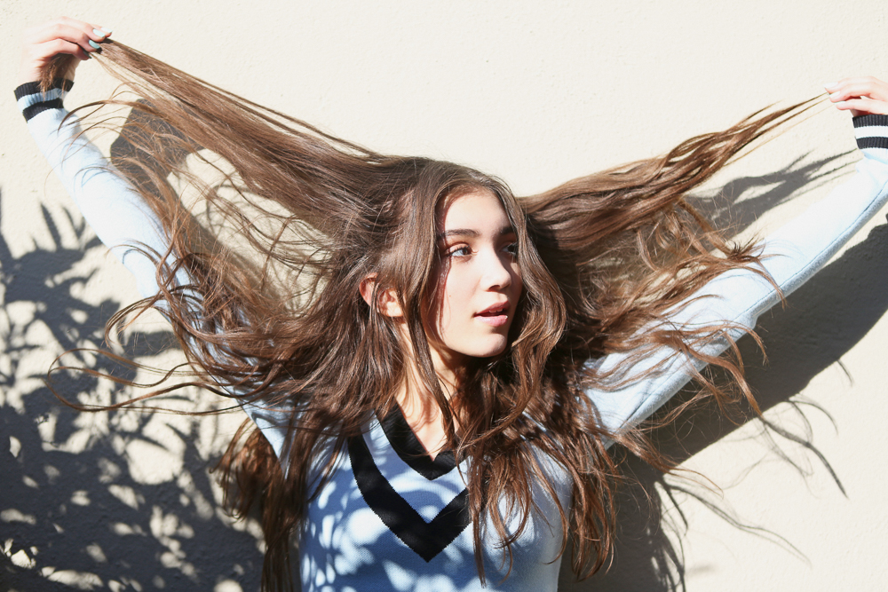 If I am feeling more fancy, I’ll do eyeliner or something, but other than that, my mom kind of watches my makeup so it has to be easy and not too much. But my makeup is completely different for the show. A lot of people say things like ‘Oh my gosh, you look so perfect on TV. Why am I not as pretty as this girl?’ What they don’t realize is how I sit there for an hour, getting pounds of foundation. I’ll look natural on camera, but I’m wearing tons of makeup for the lighting and everything. It’s a TV show, so you have to have that element—but nobody should be getting up and doing their hair and makeup like that before school. That’s the part that people don’t see.”