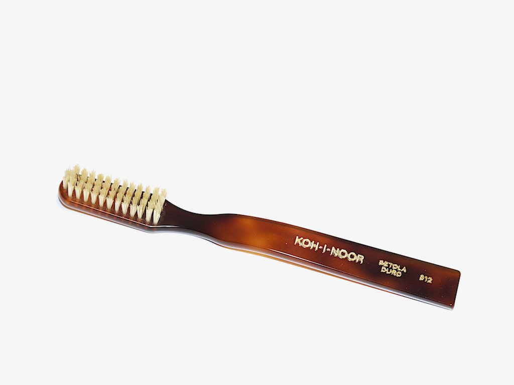 Leave it to the Italians/Slovakians to manufacture a beautiful toothbrush in the 1930s and change precious little about its design since. Koh-I-Noor’s is a tortoise cellulose acetate toothbrush outfitted with nylon, badger, or boar hair bristles (depending on your preferred firmness). The head of this toothbrush is large, almost cartoonishly so (one imagines a silk-robed Andre the Giant as the ideal user), but for that reason, perhaps more efficient? It’s also the most expensive of the bunch at a cool $19.