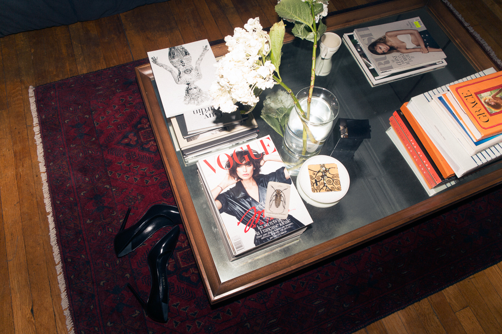 I actually don’t experiment with makeup. I used to, but at the moment, I’m actually doing the really ‘no makeup’ thing—and when I say no makeup, I really mean no makeup. I don’t even mind if there’s dark circles underneath my eyes. I think shooting with my boyfriend has changed my perception, actually. When we shoot together at home, it’s just really raw, and I do my own hair and makeup. It’s just about putting coconut oil on my skin, putting a lot of Embryolisse, and really massaging it into my skin, so my skin just kind of has that reflective surface. It looks healthy, and I think it’s cool. And it's not like I don't care—it's more like, whatever I products I use, I use to look natural. I like MAC Strobe Cream. It’s really good. You just rub it in, and it almost disappears. It’s just a really good illuminator. I put it on after my Embryolisse and on the top of my cheekbones. Then, maybe I'll rub the rest in on my chest or something. I don't do my brow bone though—it looks too obvious there.