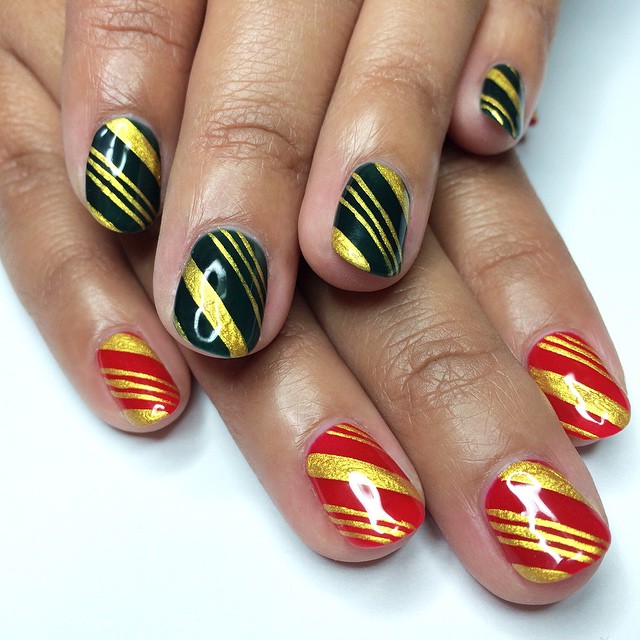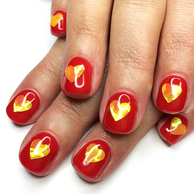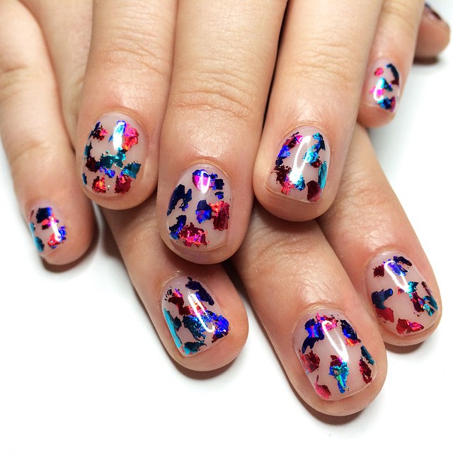 Her catalog of nail art varies in textures and techniques. Right now, the manicurist says she's inspired by hologram paper, but tomorrow it can be leaves, or metal, or even plastic. “The crazier the better, or just anything different. I'm always happy to do designs I've already done, but I would love to do something different every time. I like the idea of taking something that’s not meant for nails and making it work,” she says.