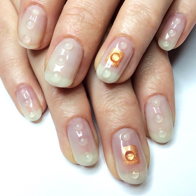 As we've mentioned before, Insta Beauty-School artists (some amateur, self taught, or professional all the same) have the power to draw us in with hyperreal images of crazy-intricate beauty looks. Maybe more wearable than brightly hued ombré eye shadow, the alternative gel manicure is gaining traction with Kelly McPherson’s intricate, multi-dimensional, ultra-glossy nails. The LA-based manicurist and owner of Bakeneko Nails uses Bio Sculpture Gel in drips, swirls, and layers to create nail art that could be mistaken for hand-blown glass. This isn’t just nail art. It’s nail imagination.