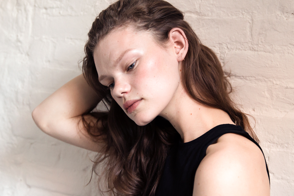 Kelly Mittendorf (The Society) photographed by Tom Newton. Kelly wears Becca Beach Tint in Papaya. Makeup by Annie Kreighbaum.