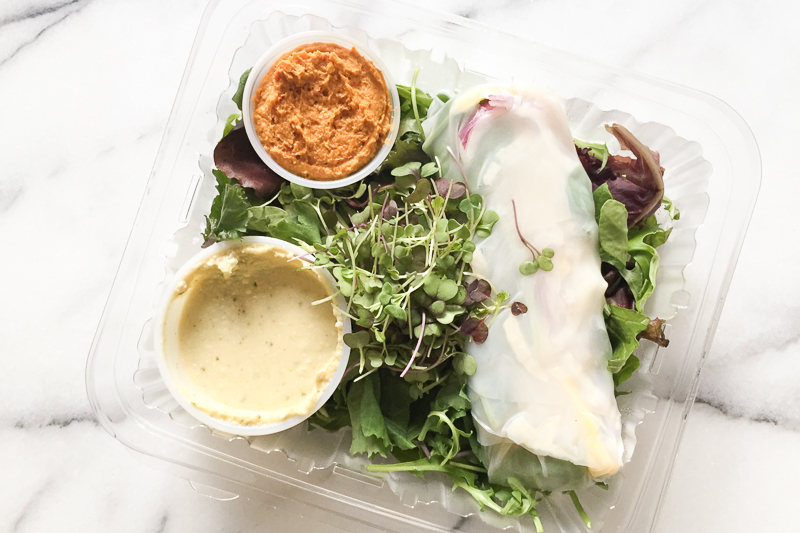 Lunch: For my second meal, I had a veggie wrap (more like a spring roll) with goji hummus on top of tons of lettuce. It was super refreshing, hydrating, and pretty tasty. I would warn anyone who goes on this plan that Sakara appears to be a big fan of garlic. I brushed my teeth several times after lunch because I had to run to a meeting and didn’t want to scare anyone off with my breath.