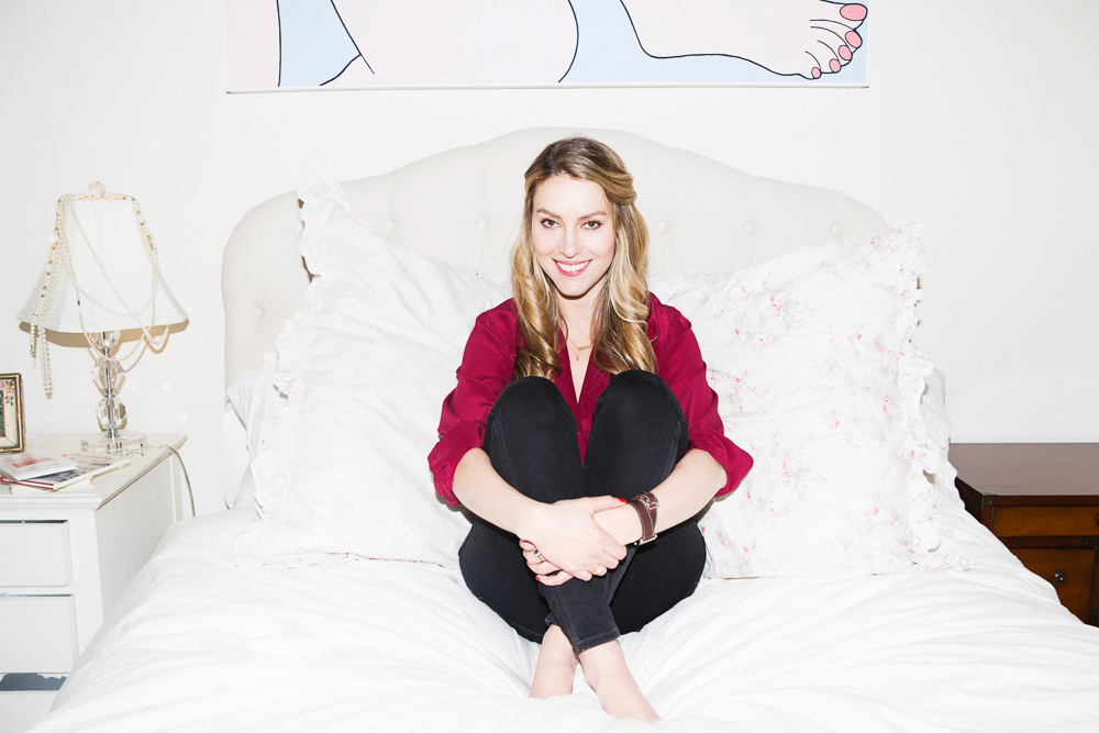 I hate lip gloss—I never wear it. I feel like it’s cheesy. I’ll maybe wear Carmex Lip Balm, but that’s about it on the regular. Though I do love MAC Amplified Creme Lipstick in Fast Play. I’ve got it down to a science in which I can fit all of my makeup in this little bag. I always take my own travel sizes of everything I use, and I always have Visine with me because I’m always tired.