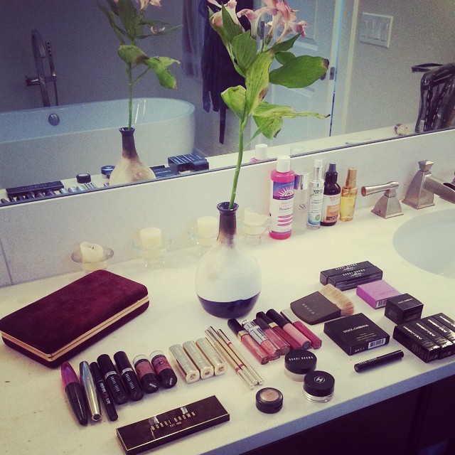 On a day-to-day basis, I am either wearing bright red, dark red, or nude lips with a cat eye and lots of mascara. I don’t usually stray from that look. I start with Bobbi Brown Skin Foundation Stick in Golden, then I use the slightly darker stick in Warm Almond to lightly contour my cheeks. I’ve tried so many foundations, and this one is just the best match for my color without looking like I have too much makeup on. Sometimes I use Becca’s The One Perfecting Brush to blend it all together.