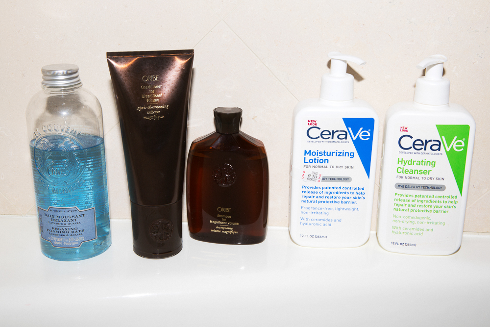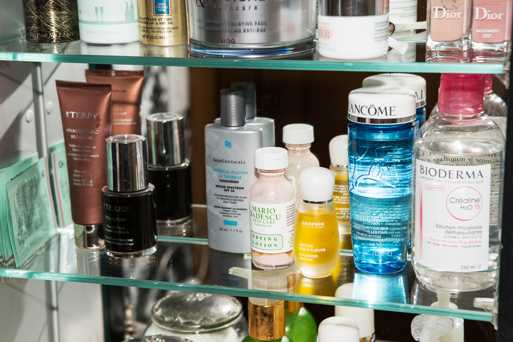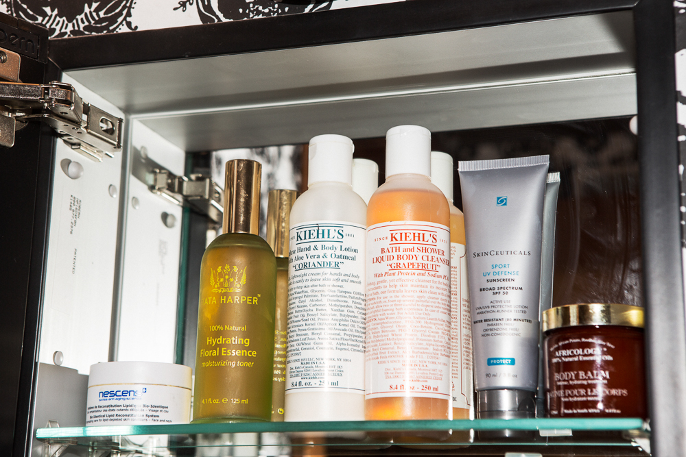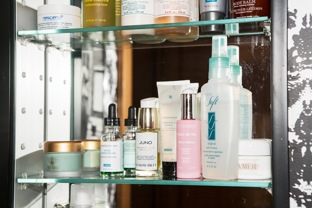 I have very sensitive skin, so in all my products I try to be very gentle and use minimal ingredients. CeraVe is nice and simple—I’ve used both the Moisturizing Lotion and the Hydrating Cleanser for year and years. That plus some Bioderma Créaline removes everything from the day. I also love the Tracie Martyn Enzyme Exfoliant as a mask because it isn’t too abrasive. Then I’ll use the Skinceuticals Phyto Corrective Gel—it’s complexion calming, so I’ll put it wherever I feel like I need something extra. In the winter I get redness across my cheeks and nose, so I’ll put it on under my moisturizer, and it’ll calm it down.
