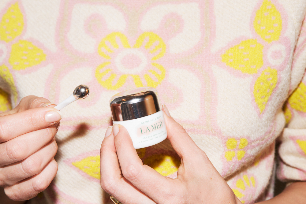 La Mer Eye Balm Intense is something I can’t seem to stop applying. I think part of it is the applicators—they control how much you use, and they de-puff! You put it on with little circular motions. I’ll use La Mer's The Moisturizing Soft Cream on occasion because I find it very intense. Sometimes I’ll put Sunday Riley Juno Hydroactive Cellular Face Oil on underneath as a serum, but only if I’m very dehydrated. Really, the CeraVe is enough for my daily moisturizer. And then when I’m traveling, I like to use the Dr. Jart Water Fuse Water-Full Hydrogel Mask because it’s super hydrating. What I really like are the eye masks that cover your eyes—I have a few different ones depending on the occasion. My Aromatherapy Associates Relax Eye Mask smells like lavender which is nice. You have to put the Imak Eye Pillow Pain Relief Mask to feel it working, but if you have headaches this one is supposed to relieve it.