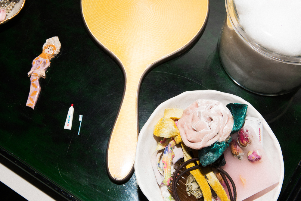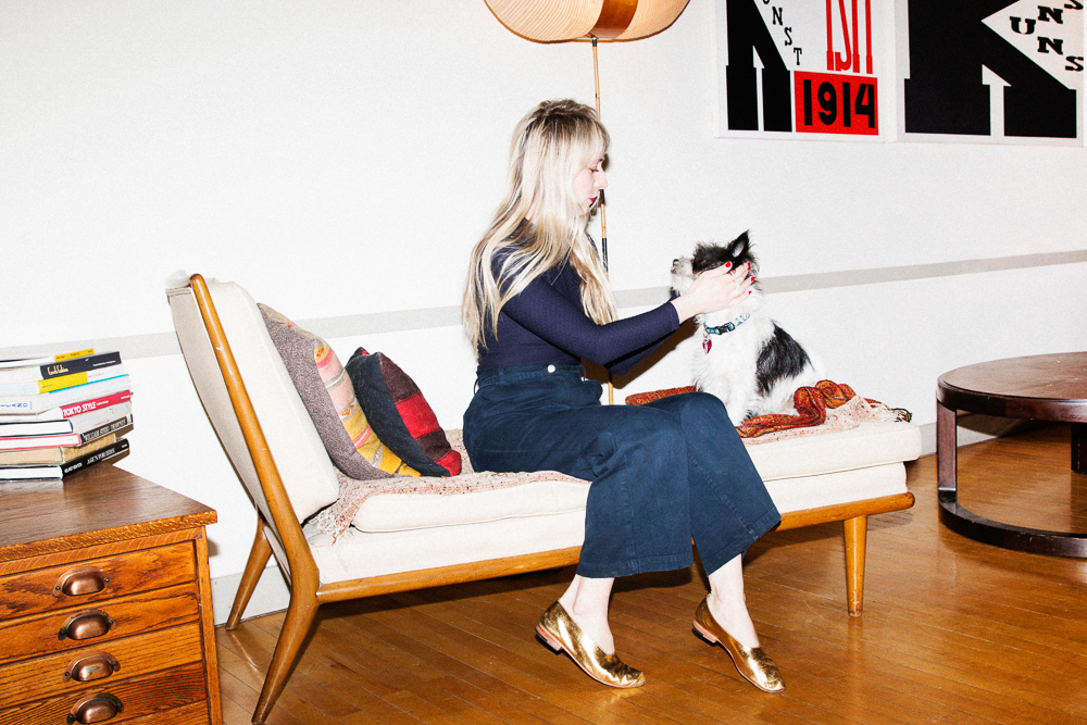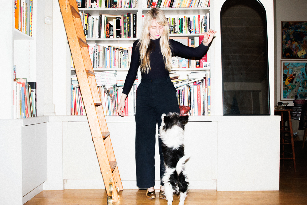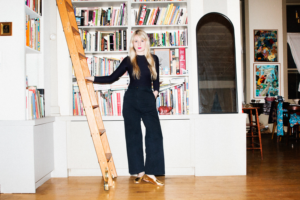 I’ve had some really fun nights recently. I like to have have people over for drinks before we go out. In college, my best friend and I would have this ritual about getting dressed to go out. We would make drinks, and when we lived together our closets had become one so we would be drinking, getting dressed, putting on makeup, and listening to music—crafting it all together. But lately, I’ve been wearing the same ‘going out’ outfit the past three times I’ve gone out anywhere. I get excited about one look, and then I kind of exhaust it until I have another. I usually wear all black and have one statement piece, but calling it a statement piece is blood-curdling, so I guess one thing that is loud or humorous.
