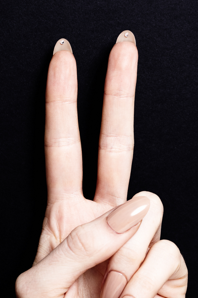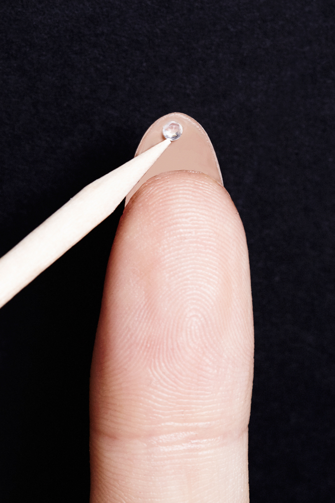 And it's always good to end on a note slightly less practical than the rest—this time with some press-ons purchased in Koreatown and stick-on crystals from Sally Hansen. While the nail can be opaque and minimal, the crystal stuck on the backside gives a little unexpected glitz. Plus it means you can ask other people to open your soda cans for you all week long. What's not fun about that?