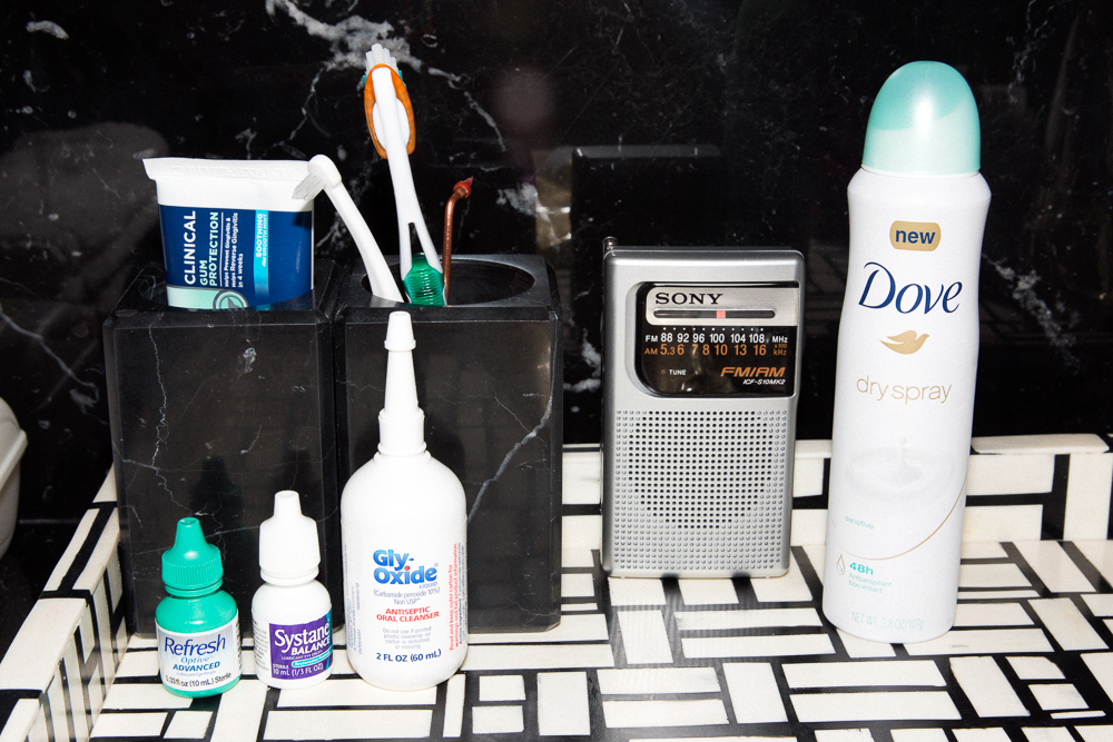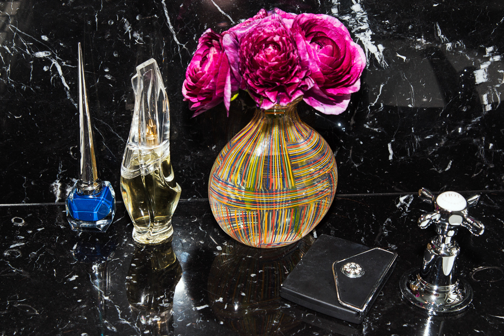 But at the same time, I’m also very lazy. I haven’t done any lasers. My last filler was two years ago…and I haven’t done Botox in two years either. The things I am OCD about doing are habits that are just generally better for the skin. I’ve never smoked a cigarette in my life. If I’m somewhere sunny, I wear a t-shirt backwards, so it’s more like a boatneck, stand under a tree, use a parasol—I really try not to be in direct sunlight because I’m sensitive to it. And I need to stay hydrated all day long. I think being dehydrated is the worst thing for your skin so I have an 8 oz. glass of some liquid in every room that I work in, and if it’s not there, I get really testy.
