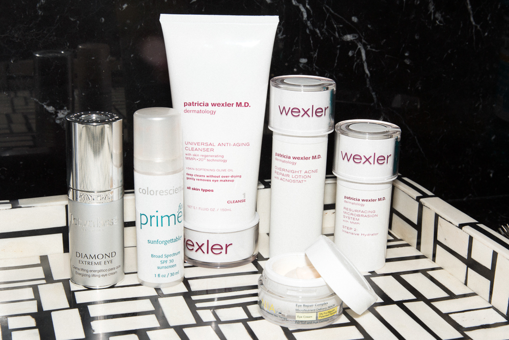 When I’m out of the shower, the first thing I put on my skin is Patricia Wexler Acnescription Overnight Acne Repair Lotion [ed note: currently unavailable]. I use a retinol three times a week—right now it’s the Natura Bissé Diamond Extreme. I think that it’s great, but you have to know how much your skin can tolerate. I have a lot of red in my face, so I’m careful. If you’re not so red, you can use it a little more, especially because a lot of the new formulas are non-irritating. I also love the Natura Bissé Diamond Ice-Lift. A day before a red carpet event, you put it all over your face, leave it on for 10 minutes to dry, and it peels off like cellophane. It looks like you had a facelift. I try to keep two jars around at all times. If you have puffy eyes or lip lines, it’s like a miracle.