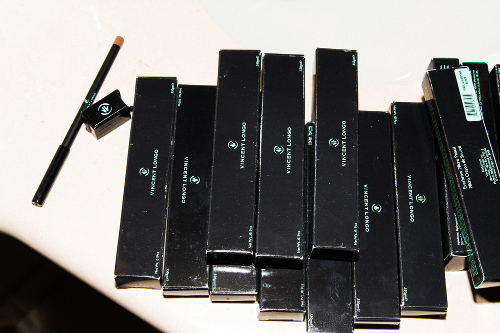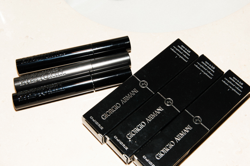During the day, I use ColoreScience Sunforgettable Face Primer. It makes your makeup go on really smooth and has SPF 35, which is fine for the winter. I use SPF 45 in the summer. After my primer, I use my new Giorgio Armani Luminous Silk Foundation in 5.75— It’s really nice. I use my fingers to apply it, not a brush or sponge. I know makeup artists do it with tools, but I don’t have the time or the patience for that. And afterward, this is the best blush— Giorgio Armani's Cheek Fabric Sheer Blush in 306. After that, I go for my eyebrow pencil—the Vincent Longo Eyebrow Micro Pencil in Auburn one is the only one that goes with my red hair. I bought 40 at a time because you can use this pencil, and in a week to 10 days, it’s literally a micro pencil—but it’s the only one that doesn’t look like you’re penciling it on, which is good because my brows are totally blond. I dye them, and it only takes two minutes. Then I highlight under them with Anastasia Beverly Hills Brow Duality in Camille Sand.