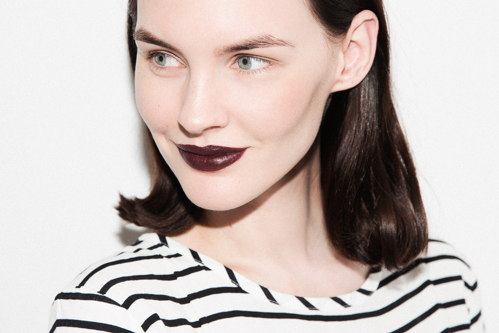 Now all you have to do is select a shade. We made it easy for you and gathered a few of our favorites in order of transparency—from glazed to impenetrable—and they're easier to pull off than you'd think. Those looking for something a little darker than true-lip might peruse the plums, mulberries, and red violets of the lipstick garden. In the same vein, a more dramatic look will skew black. A good rule of thumb is to mind your skin tone—the paler the face, the closer to goth. Not always a bad thing! But something to think about.