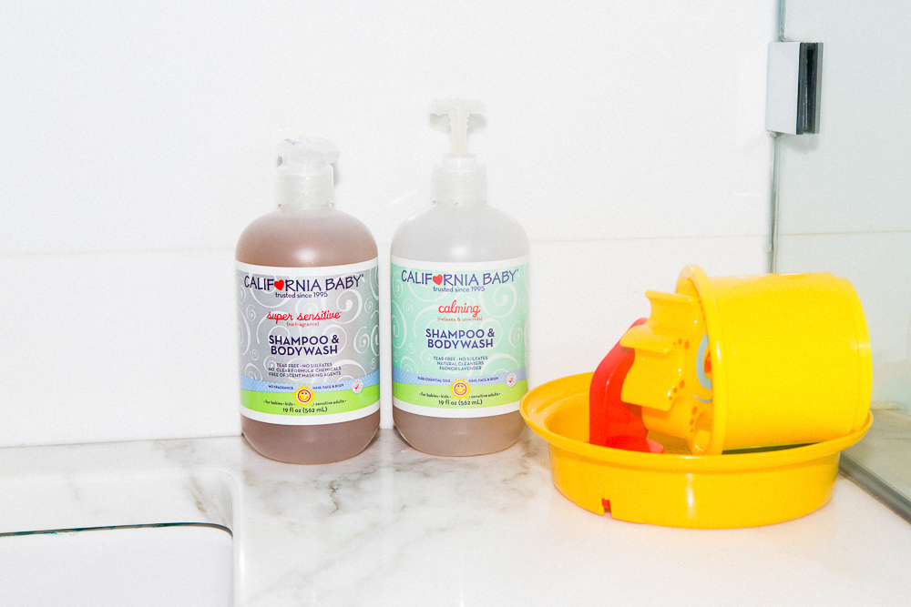 I don't wash my hair every day, but I do love a good, long shower. It'll get to the point where my husband asks 'Are you drowning in there?' It gets pretty hot in here. I use California Baby Calendula Shampoo and Body Wash. Sometimes I’ll use Jāsön Natural Body Wash. I have really sensitive skin that probably gets drier because I sit in the shower for so long.