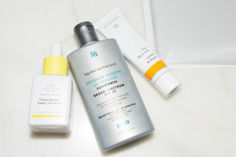 I’ll buy things at Whole Foods. I’m pretty big into trying to minimize using chemicals that aren't great for you. Dr. Hauschka is one of my favorites—I just started using the Soothing Cleansing Milk. Then I'll using some Clarifying Day Oil. I use Drunk Elephant's Virgin Marula Luxury Facial Oil sometimes—I can’t use it all the time because it’s too moisturizing. Those I bought because they were all recommended to me, but I’m also fortunate in that I get sent a lot of stuff over to try. I have tons of it, but I don’t use everything. I tried something new recently from a friend, and it broke me out. I haven’t had a pimple in a very long time and then all of a sudden I was like, ‘Ugh I’m going to kill her.’