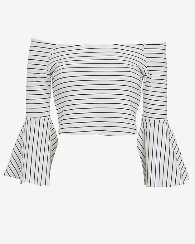 Torn By Ronny Kobo Striped Off The Shoulder Top: Bell sleeves balance out the crop on this, along with any bustiness on top (though it looks great on flatter ladies, too). This is a piece that prefers to be worn with high-rise jeans or wide-leg trousers, and is, at its core, just looking for a good time.