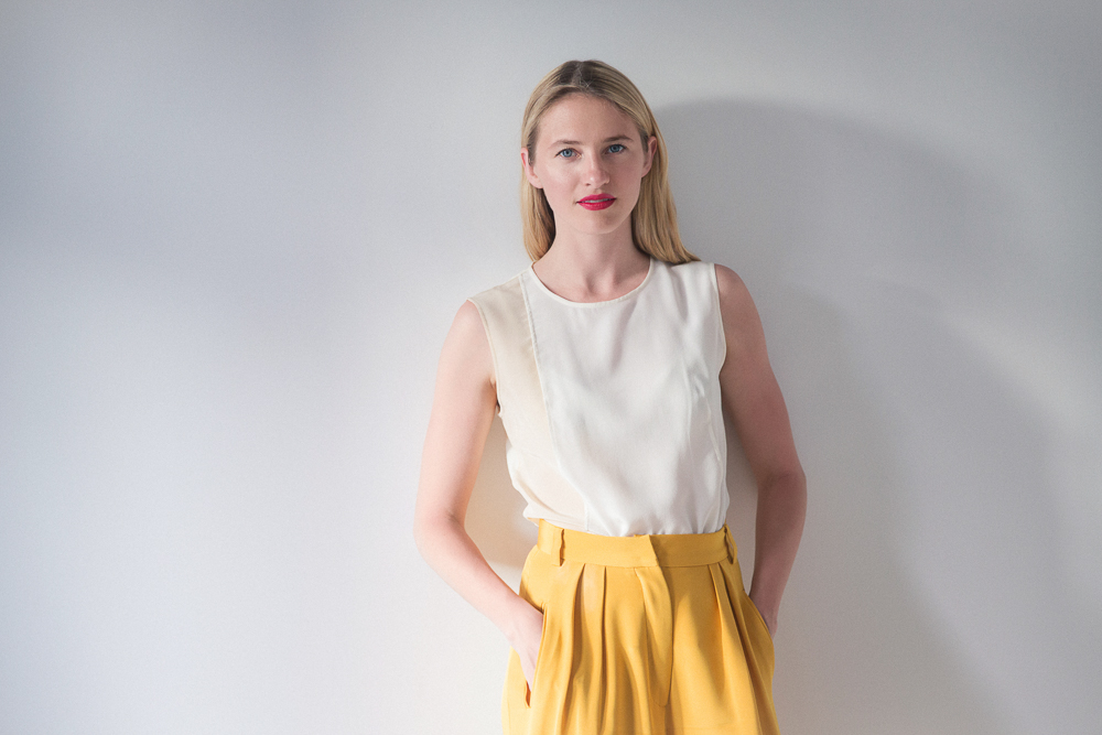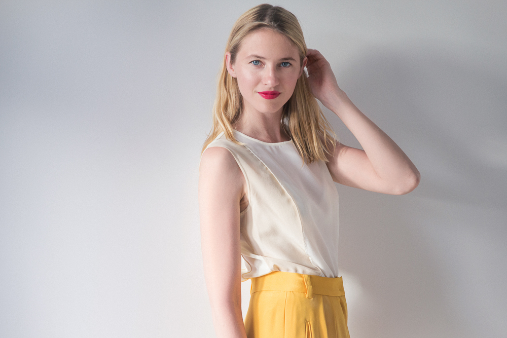 Sara Ziff (Marilyn Agency) wearing Mary Pingblouse and pants photographed by Tom Newton. Read more of The Face here.