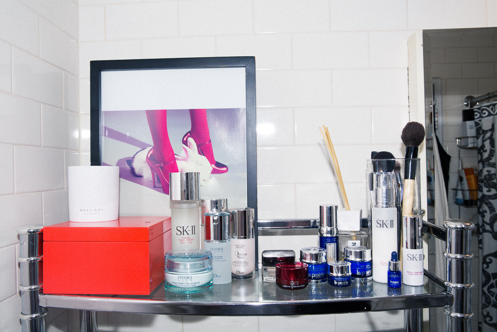 I hate getting ready alone. I live by myself in the city, but one of my best friends lives three blocks away from me—obviously because he’s obsessed with me [Laughs]—so he’ll come over a lot if we’re all going out together. I’m a girl’s girl though, so I like having my girlfriends over. I guess that’s me growing up with my sister and all of my girl cousins—we grew up kind of forced to get ready together in the same space. Old habits die hard. I like to coordinate and be part of the same story with our outfits. It’s a process—but really, it’s like one big never-ending adult slumber party.
