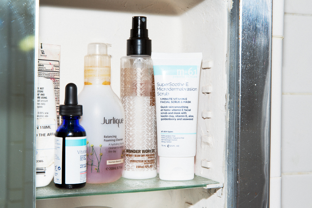 Sometimes I'll stay in the same makeup from work to go out at night, though. It gets really matted down because they're constantly powdering you throughout the day—I don't normally wear that much powder, but if you take a little off, it works really well for an event. Same goes for my hair. I usually can’t dry all my hair myself because it’s really thick, so I’ll just throw in some Oribe Dry Texturizing Spray to make it look good again.
