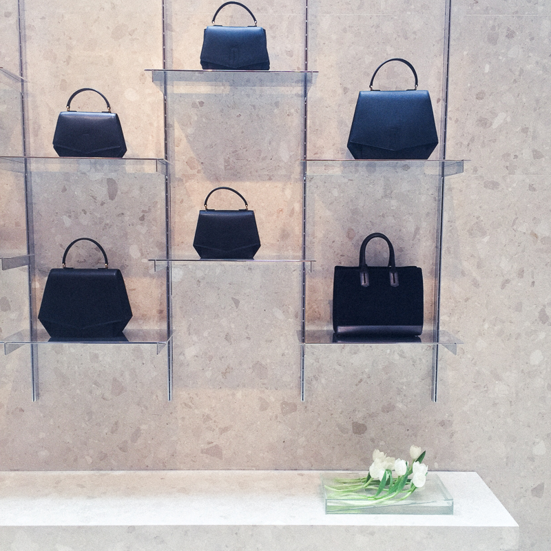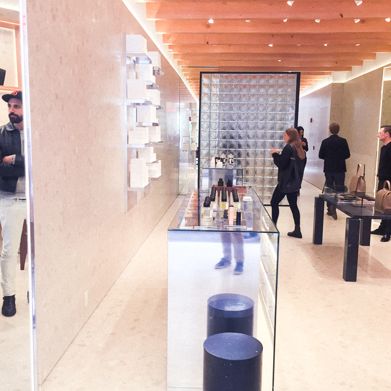 Wednesday afternoon, founder Ben Gorham (read his The Professional here) was there to walk us through the space—a long, beige marble dream of a space that, if you position yourself just right in the entryway mirrors, reflects the Céline store across the street, making it the one place in New York you'll never want to leave.